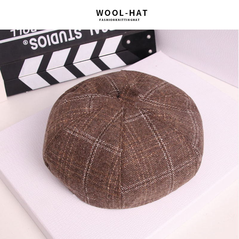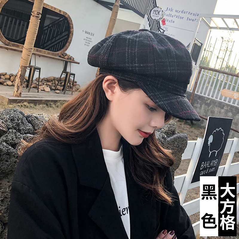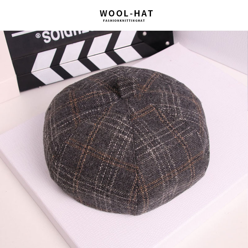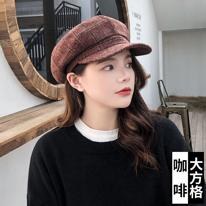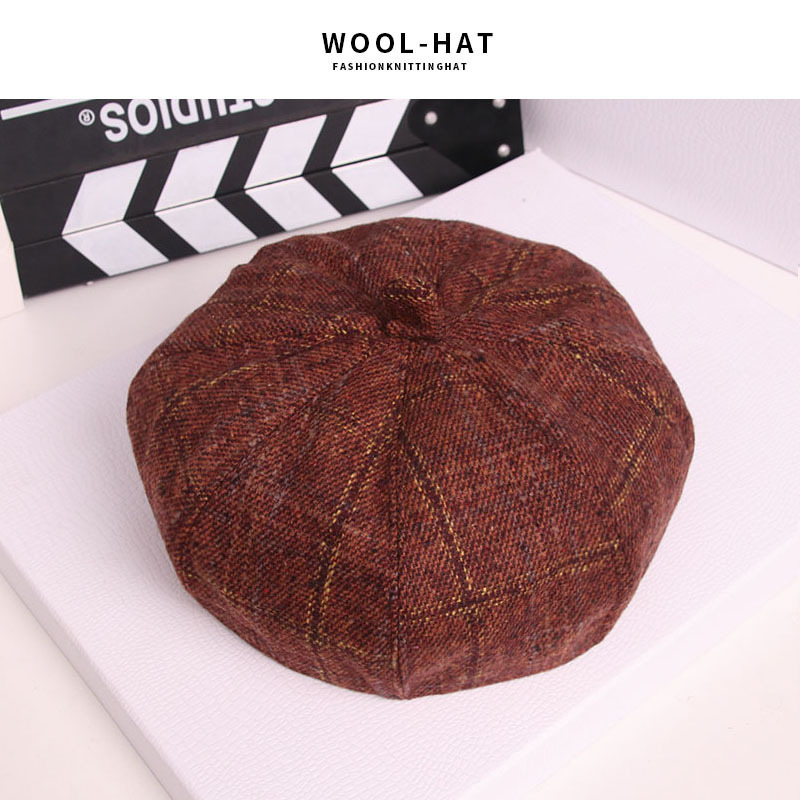 韩版复古文艺八角帽 秋冬男女情侣潮休闲百搭格子贝雷帽厂家批发