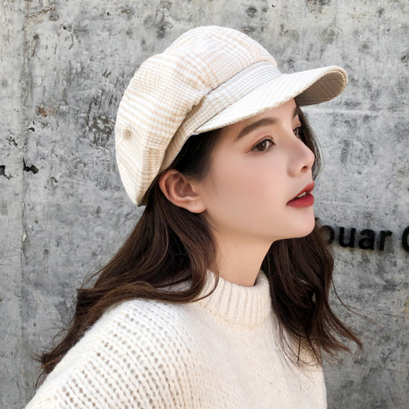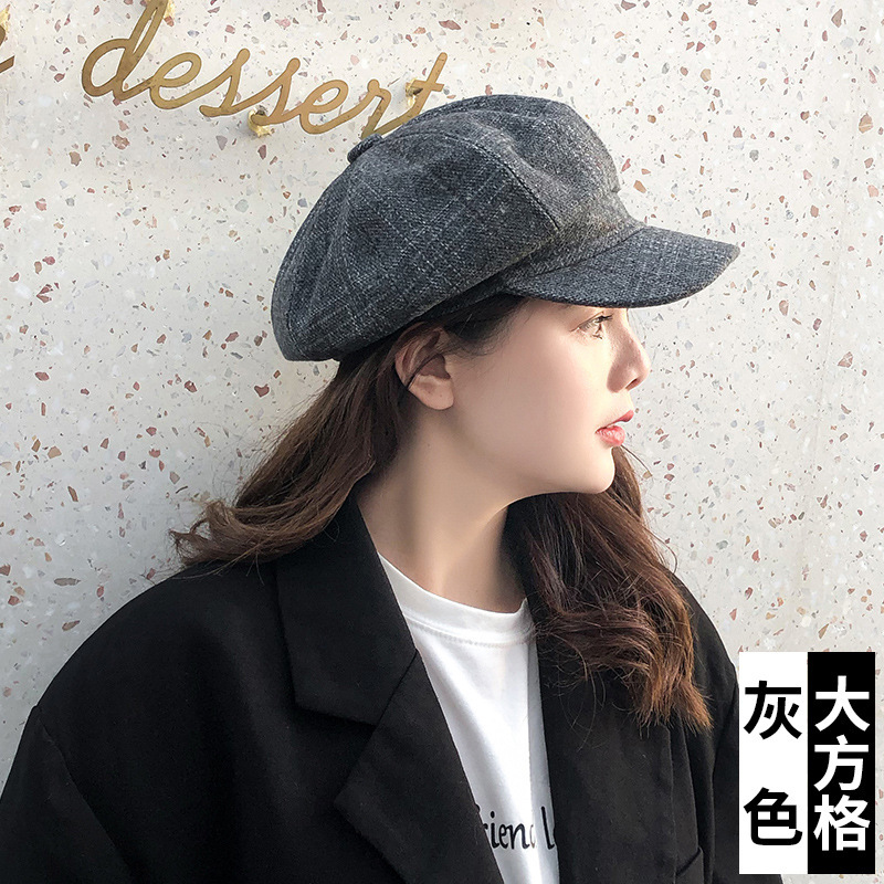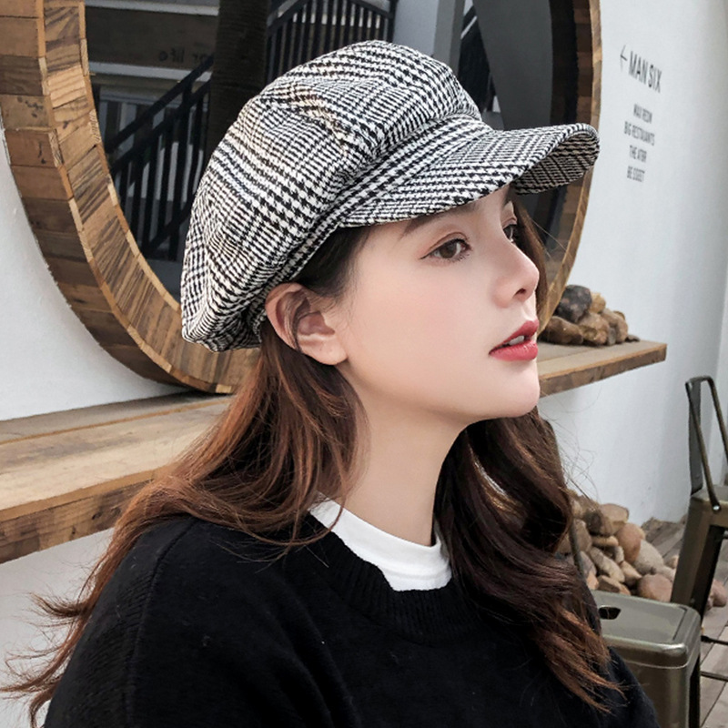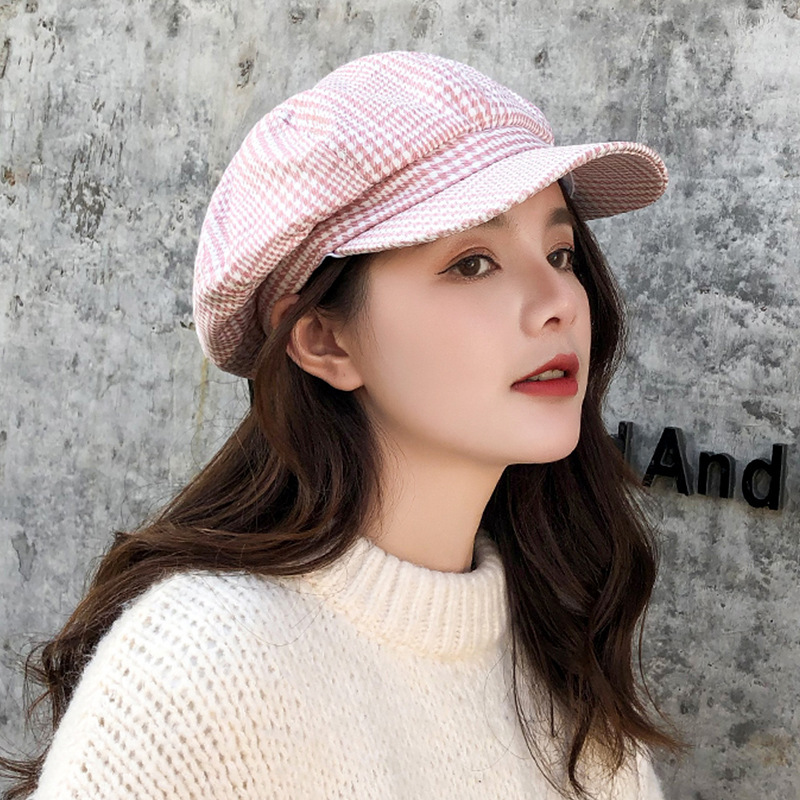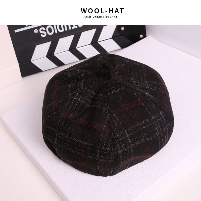 韩版复古文艺八角帽 秋冬男女情侣潮休闲百搭格子贝雷帽厂家批发