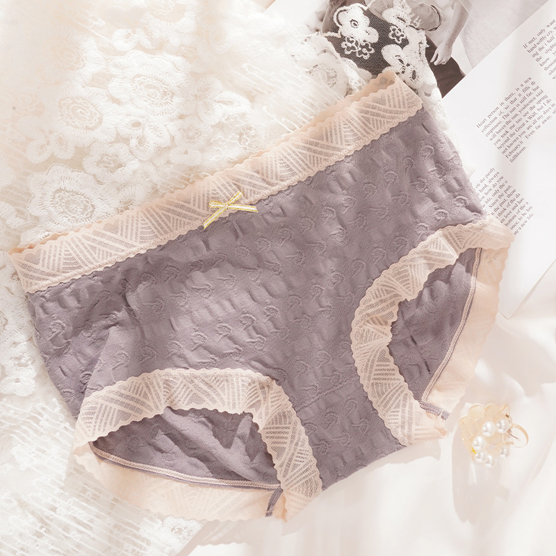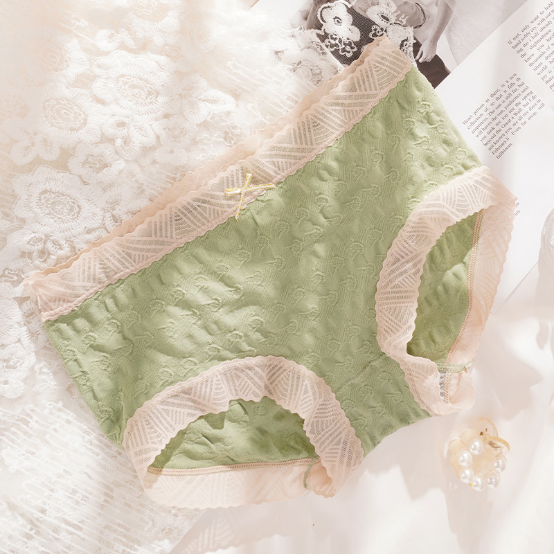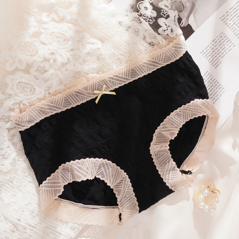 少女蝴蝶结蕾丝内裤 女士透气面膜石墨烯中腰提臀大码三角裤