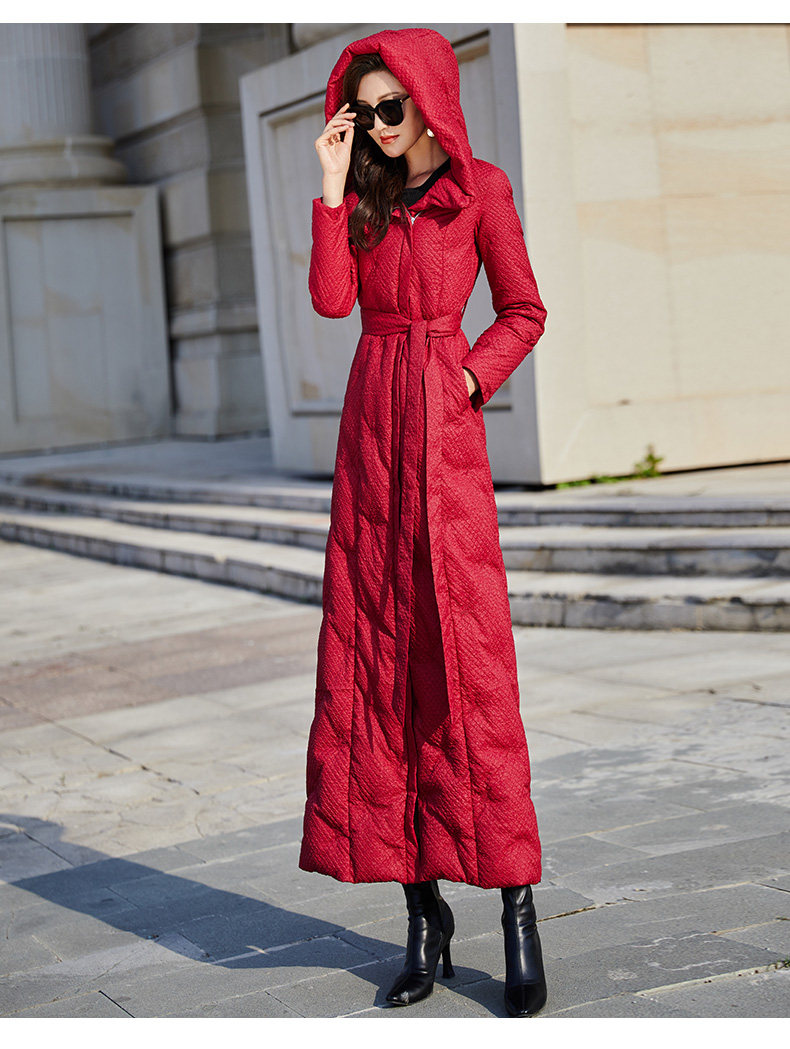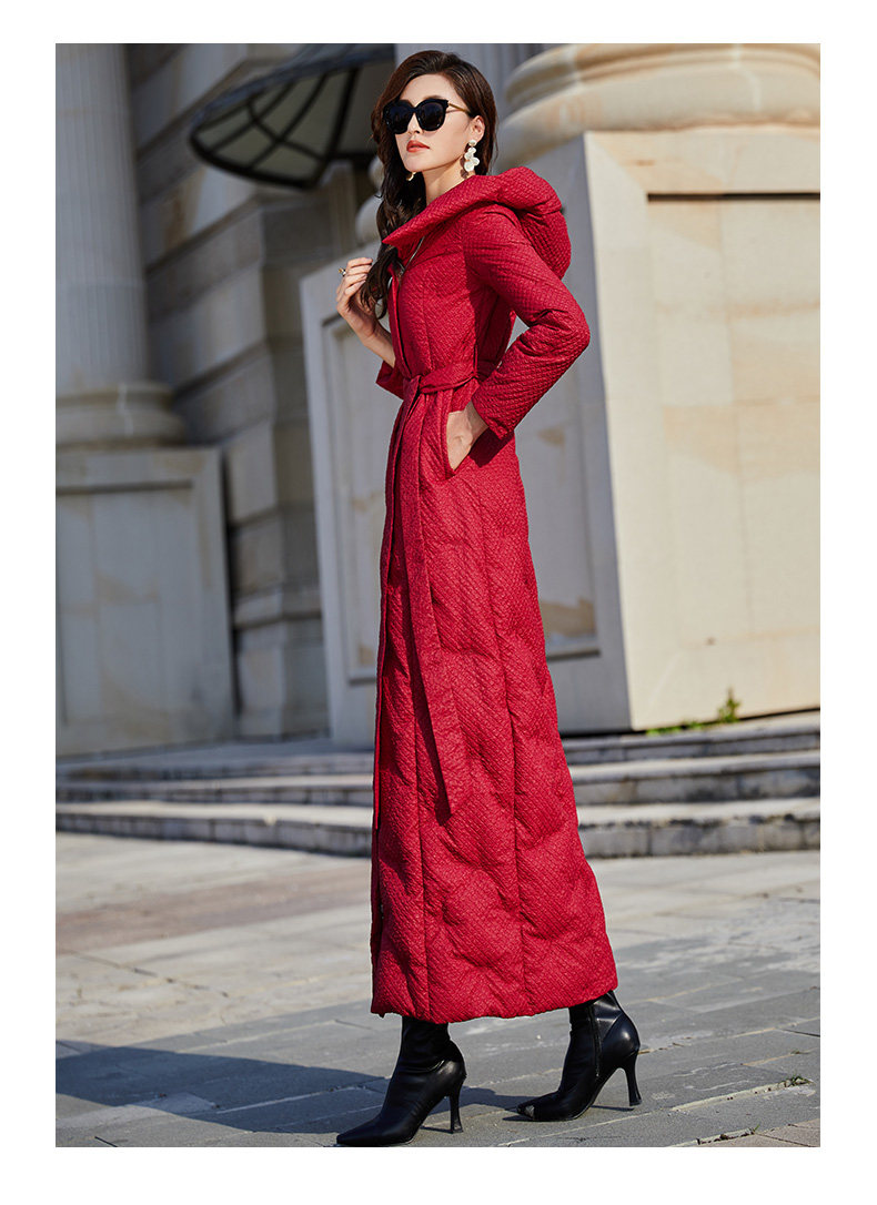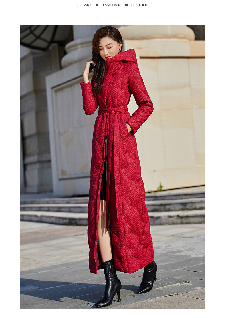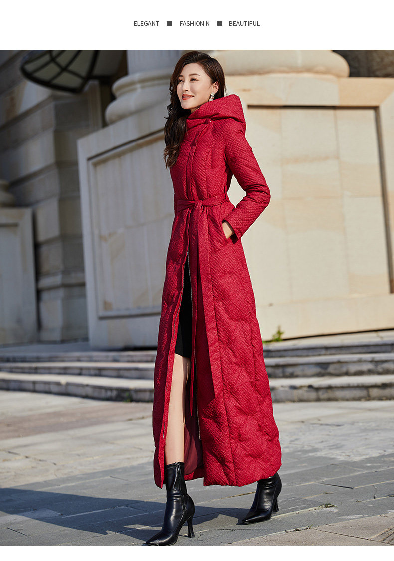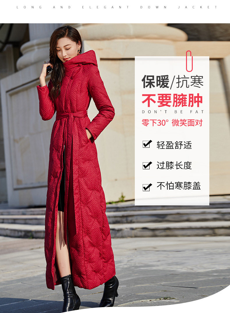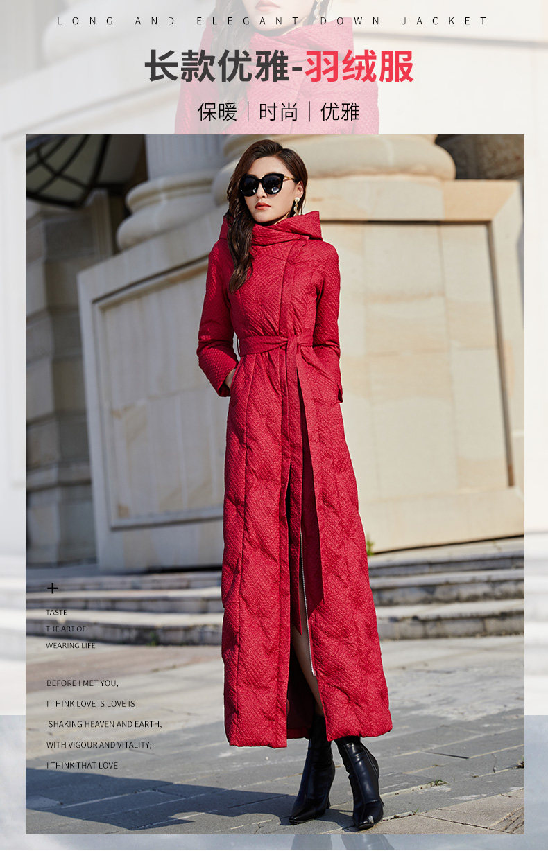 冬季红色免洗羽绒服女长款到脚踝时尚超长过膝加厚白鸭绒