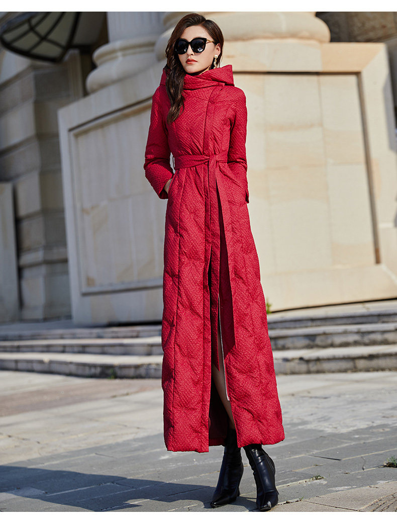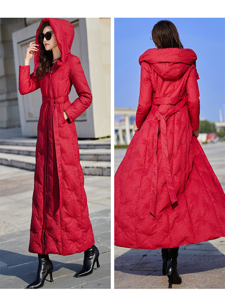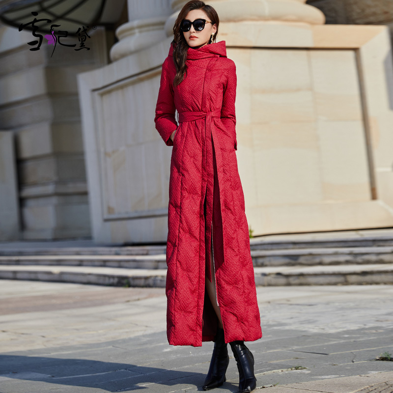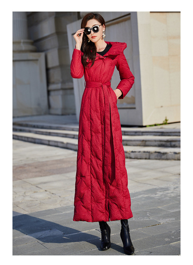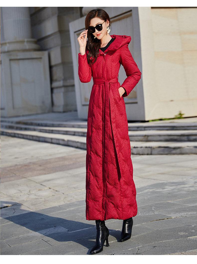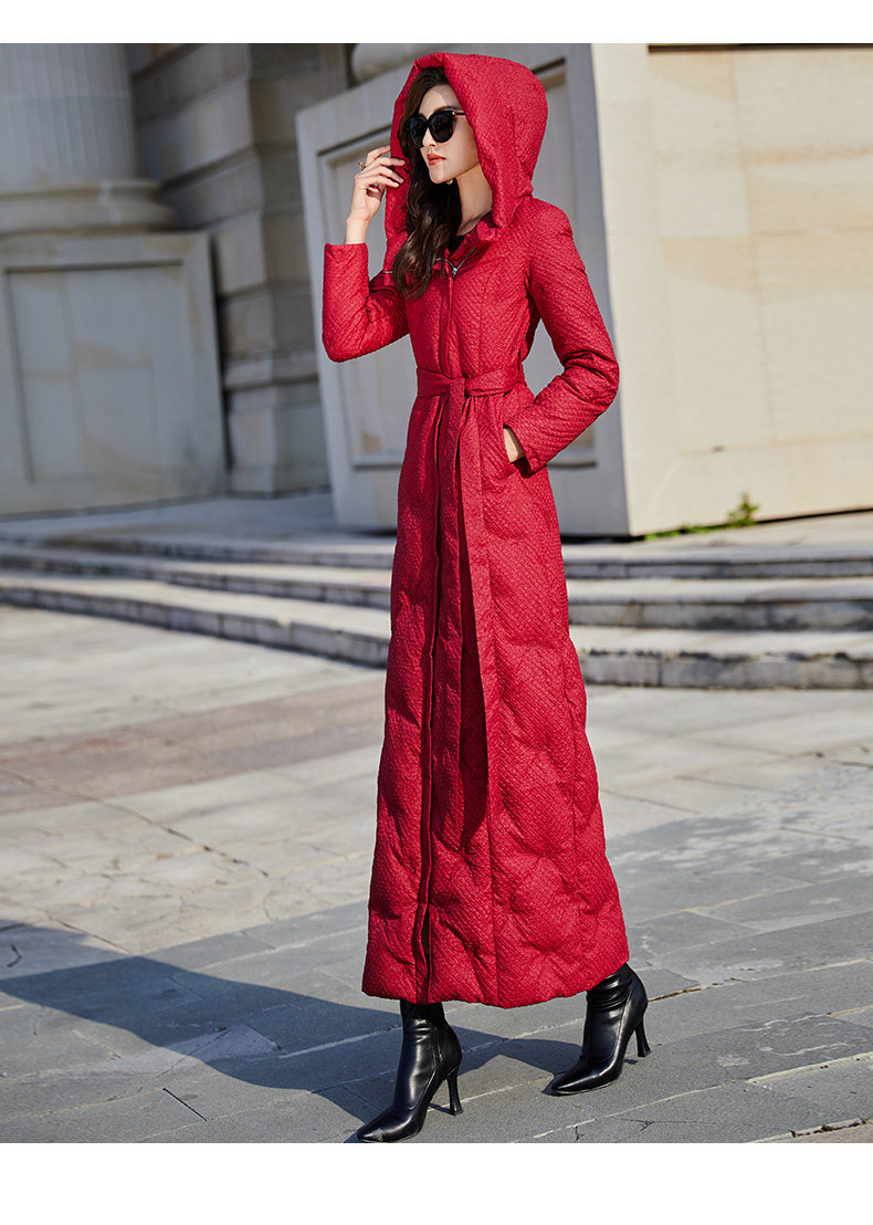 冬季红色免洗羽绒服女长款到脚踝时尚超长过膝加厚白鸭绒