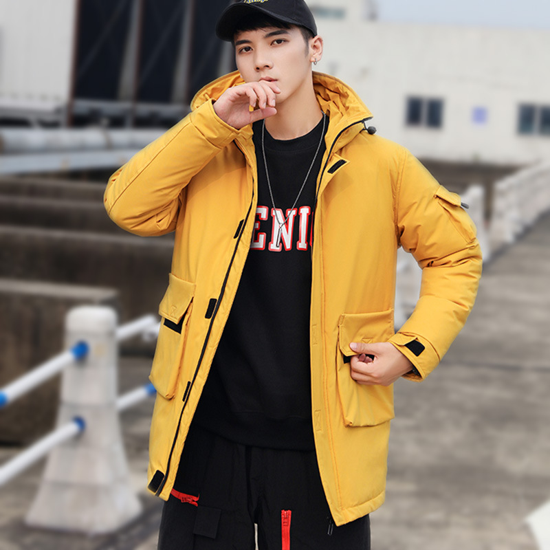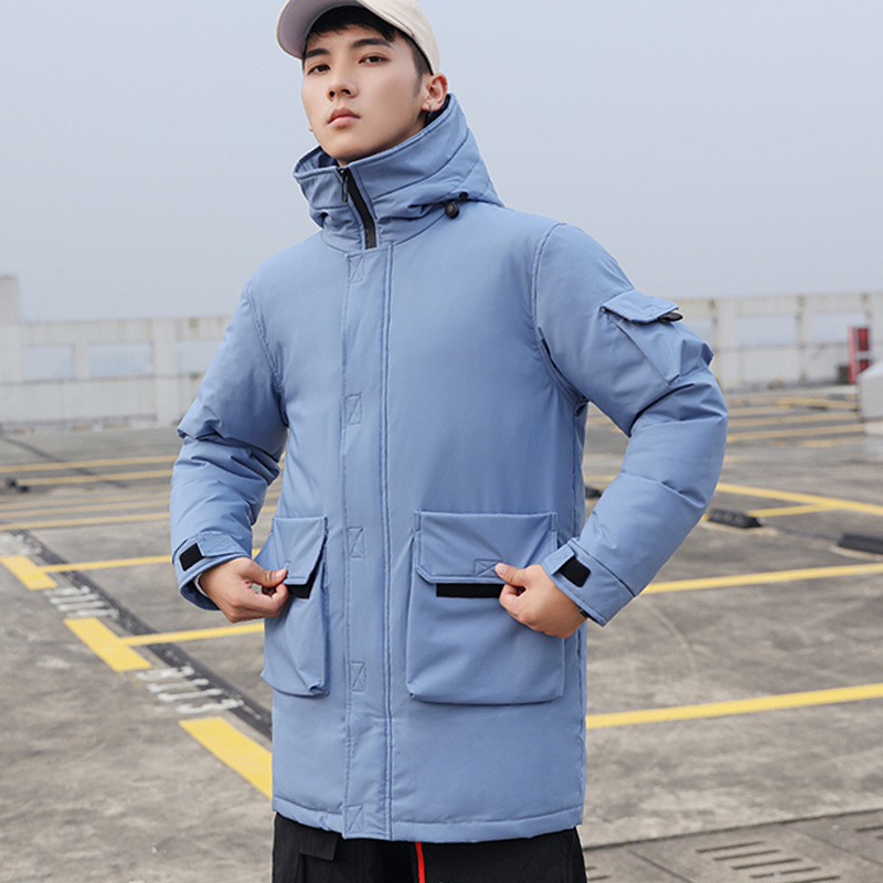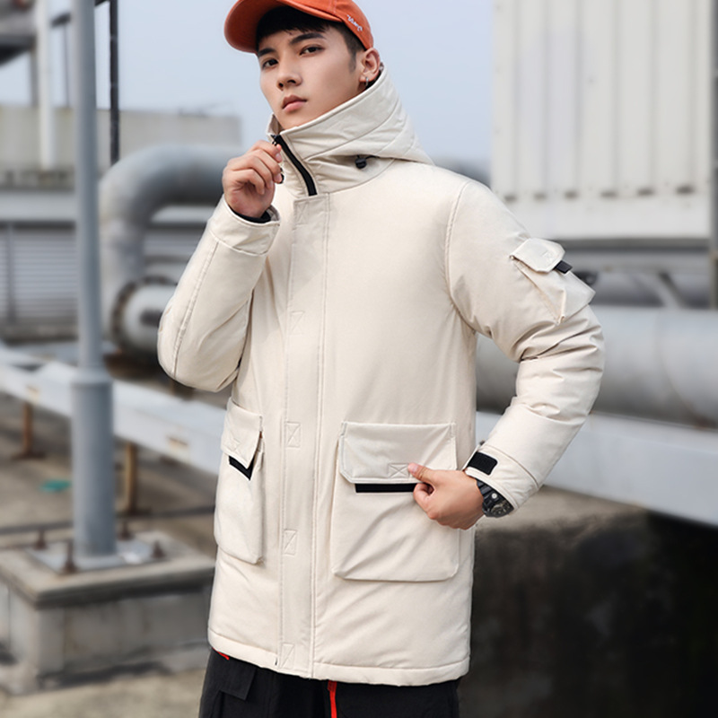 特价休闲工装羽绒服男中长款连帽白鸭绒青年学生冬装外套一件代发