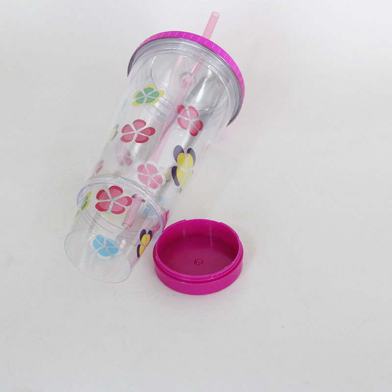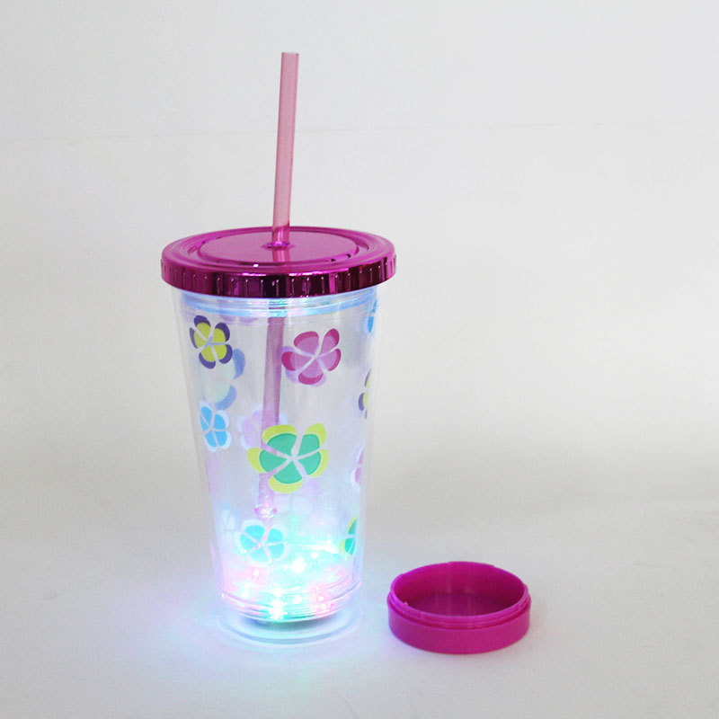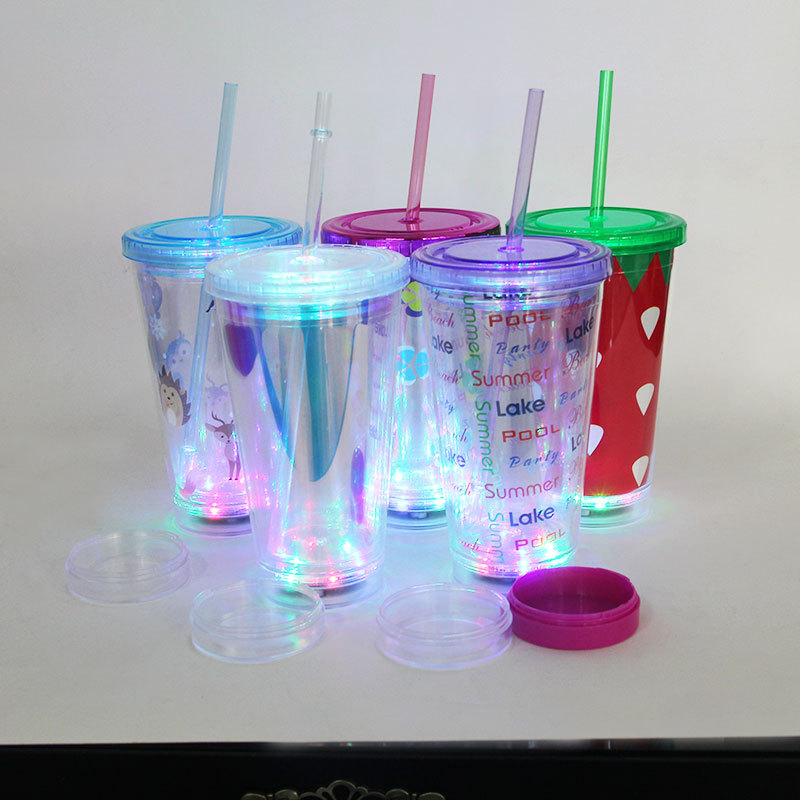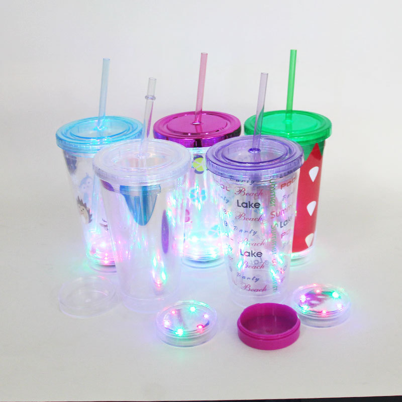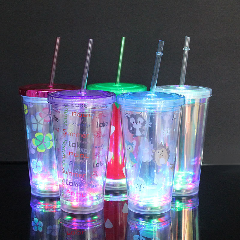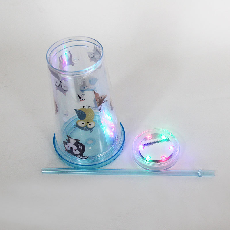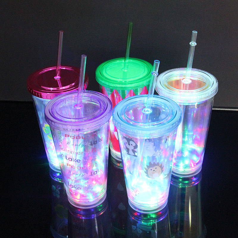 工厂直销双层吸管杯发光可拆底吸管杯塑料吸管杯发光杯吸管杯