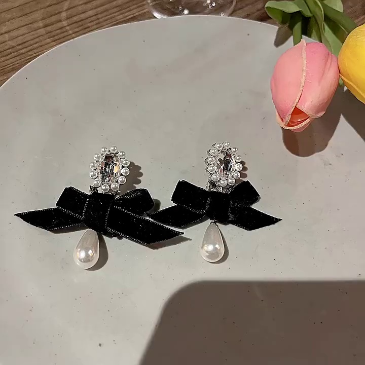 S925银针韩版秋冬款黑色植绒夸张几何形耳环女ins潮耳钉一件代发