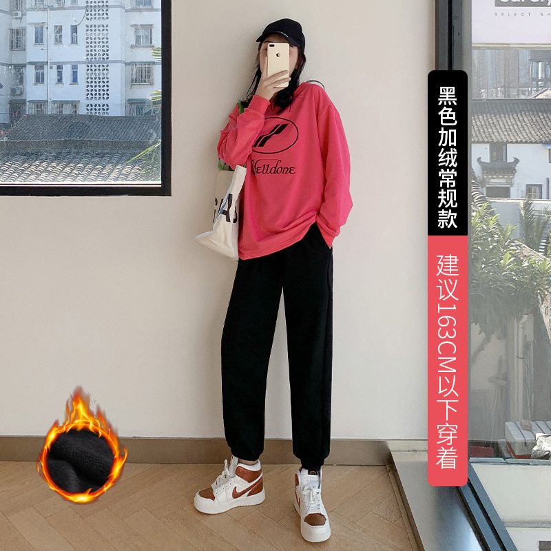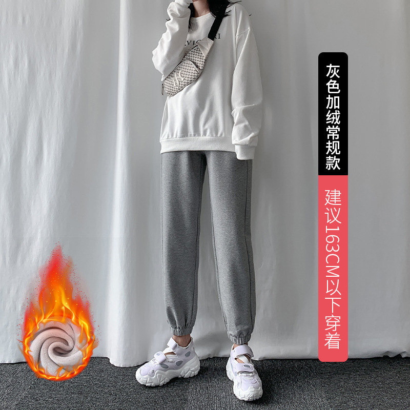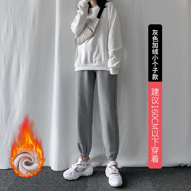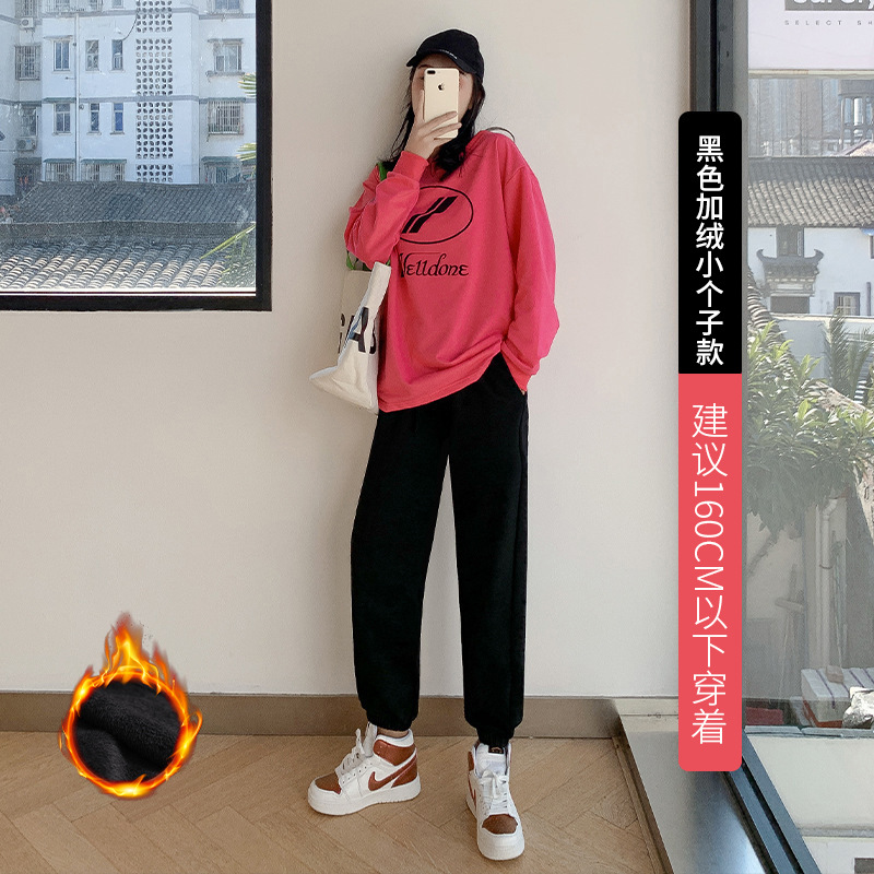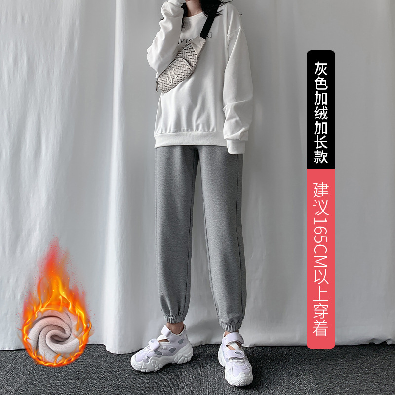秋冬季加绒束脚卫裤休闲阔腿裤子女收口系带宽松棉运动裤