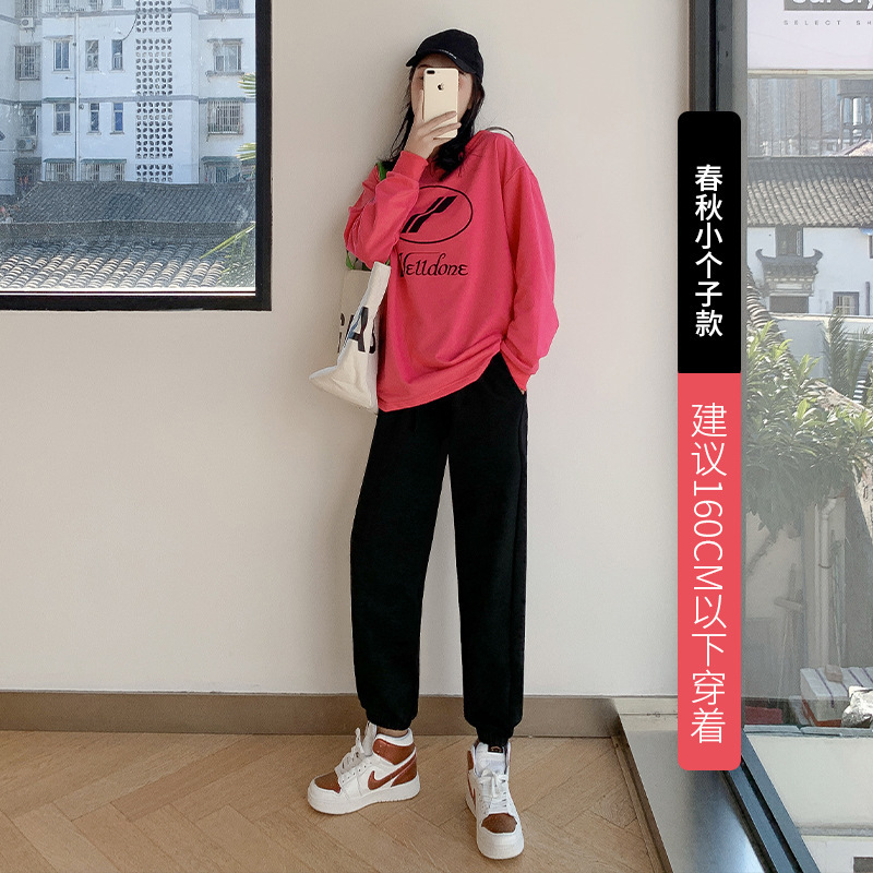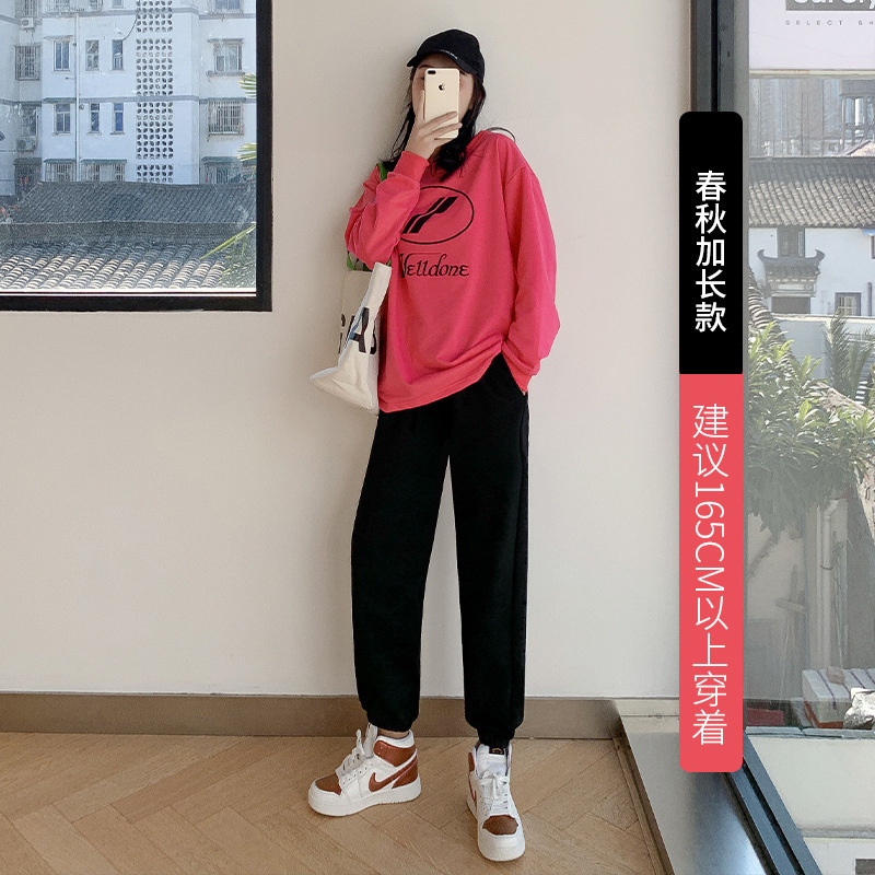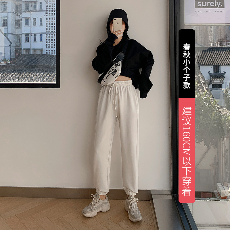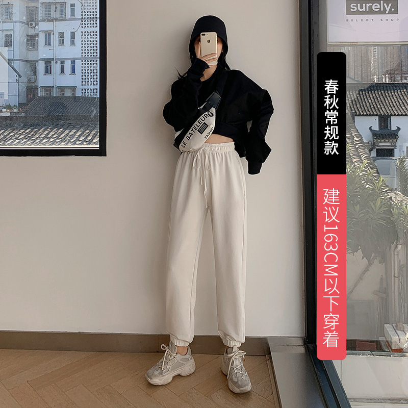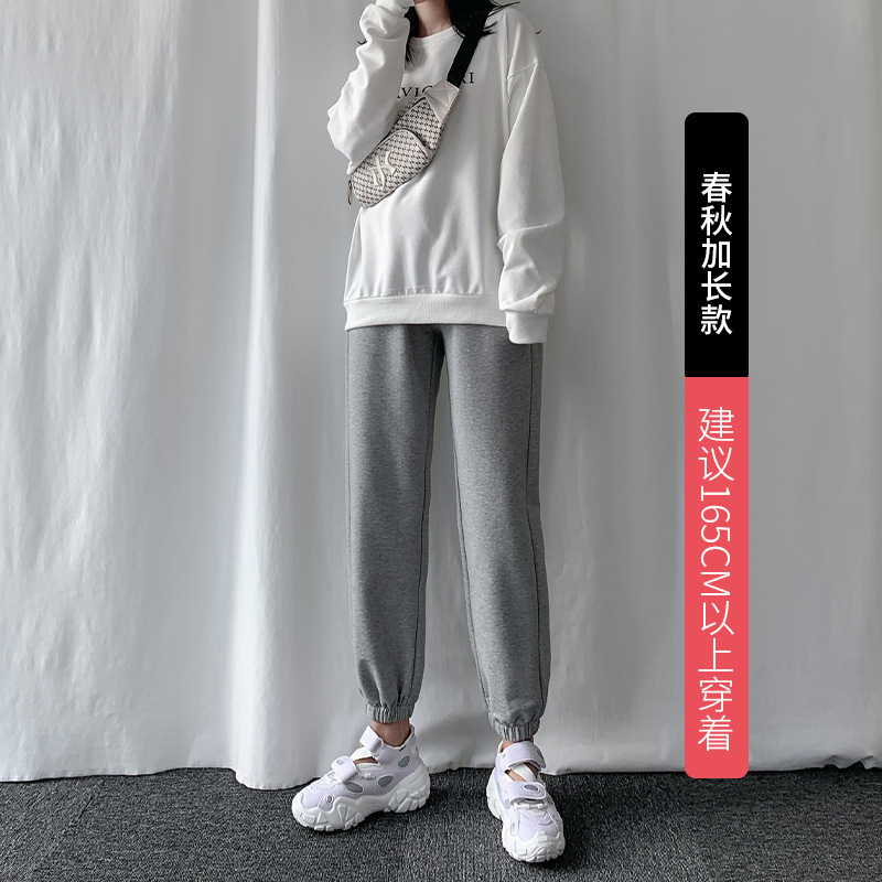 秋冬季加绒束脚卫裤休闲阔腿裤子女收口系带宽松棉运动裤