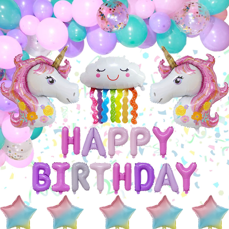 亚马逊跨境新款独角兽生日气球套装16寸派对装饰字母铝膜气球