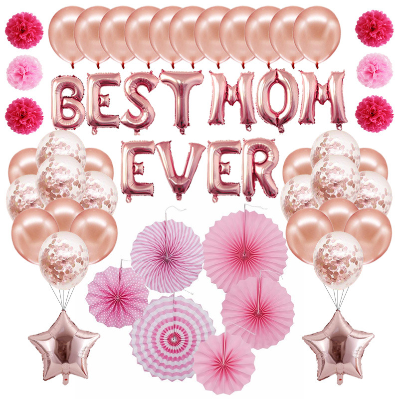 亚马逊新款 母亲节气球套装 纸花球best mom ever玫瑰金派对布置