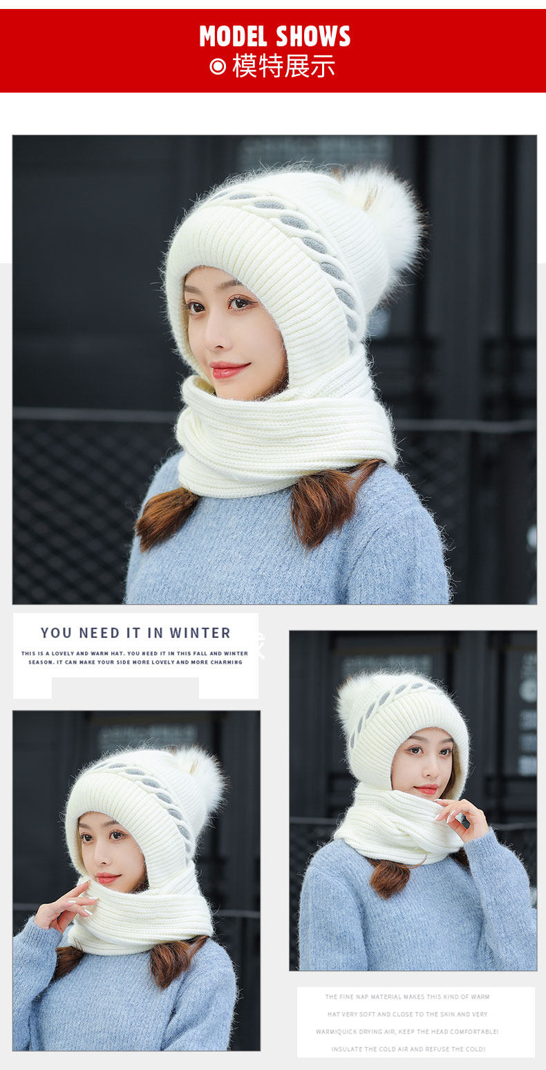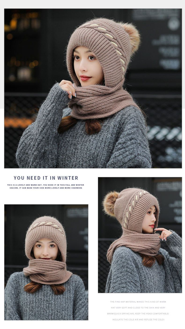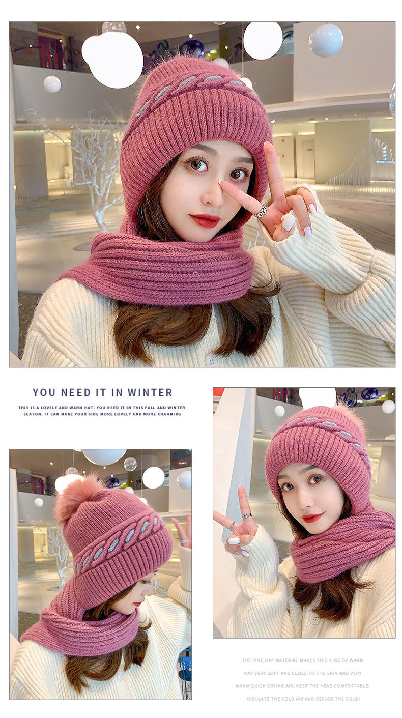 毛线帽子围巾一体女冬甜美可爱韩版百搭加绒加厚护脖保暖针织帽潮