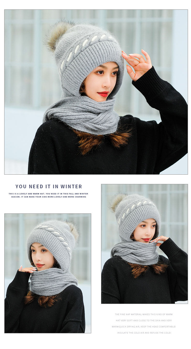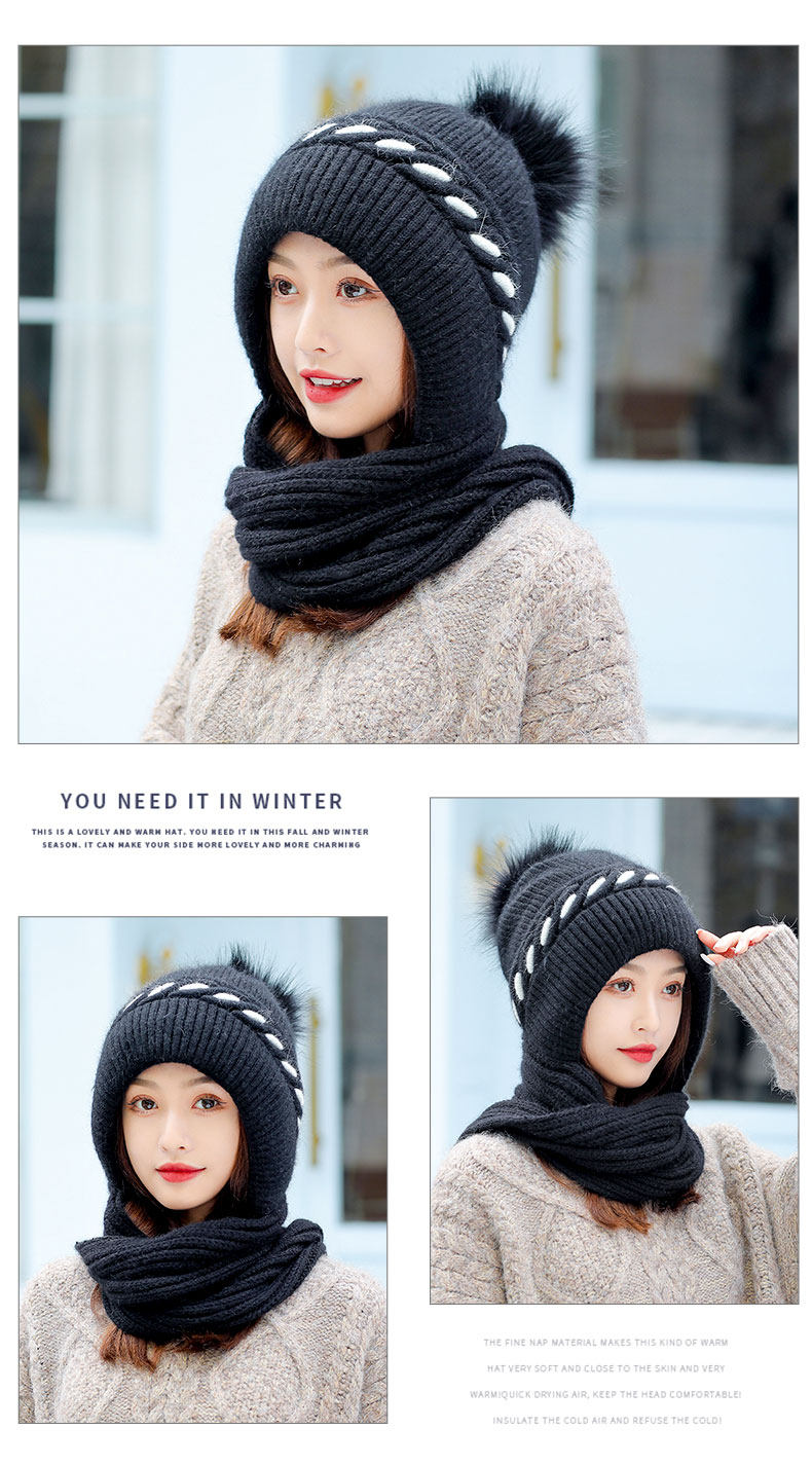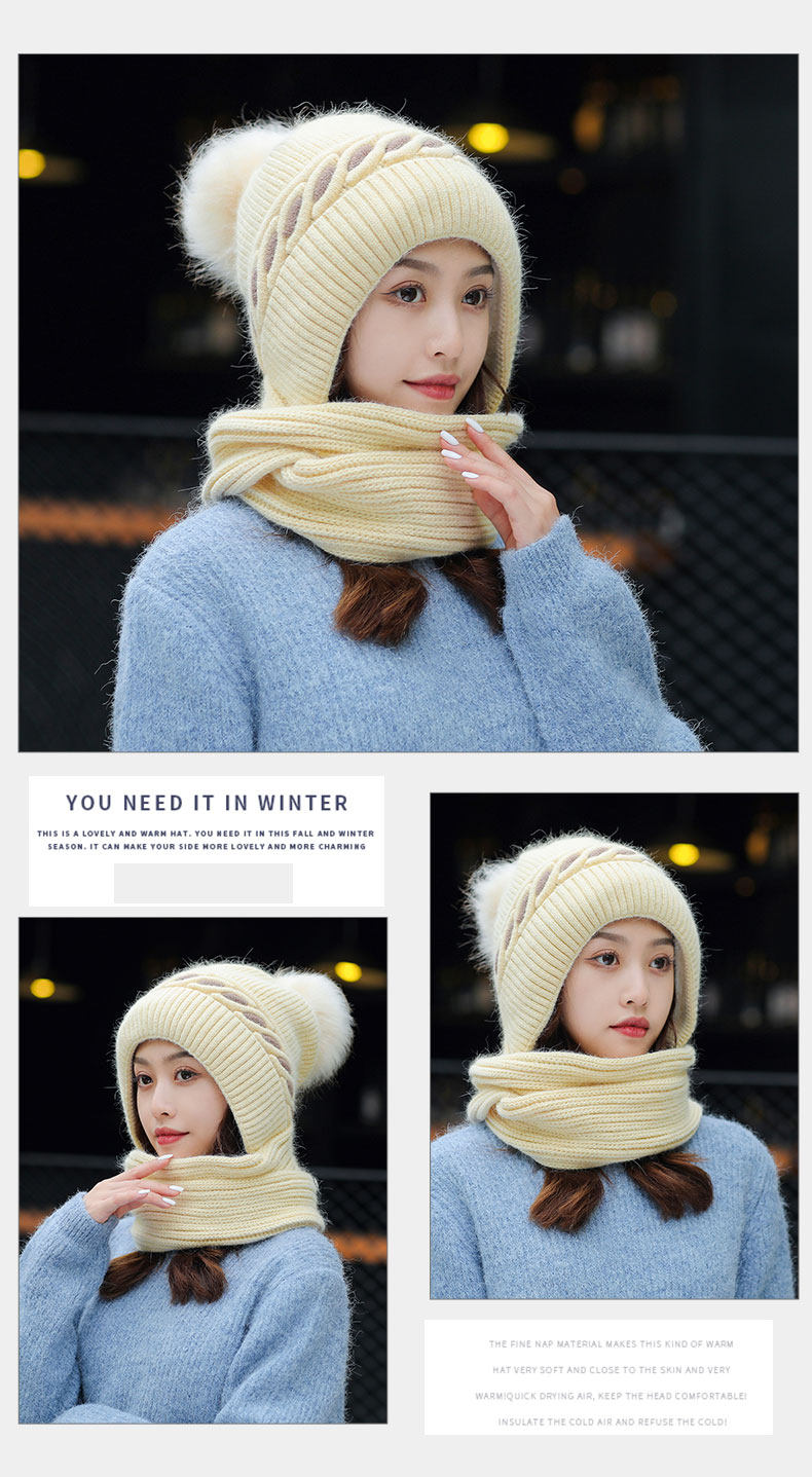 毛线帽子围巾一体女冬甜美可爱韩版百搭加绒加厚护脖保暖针织帽潮