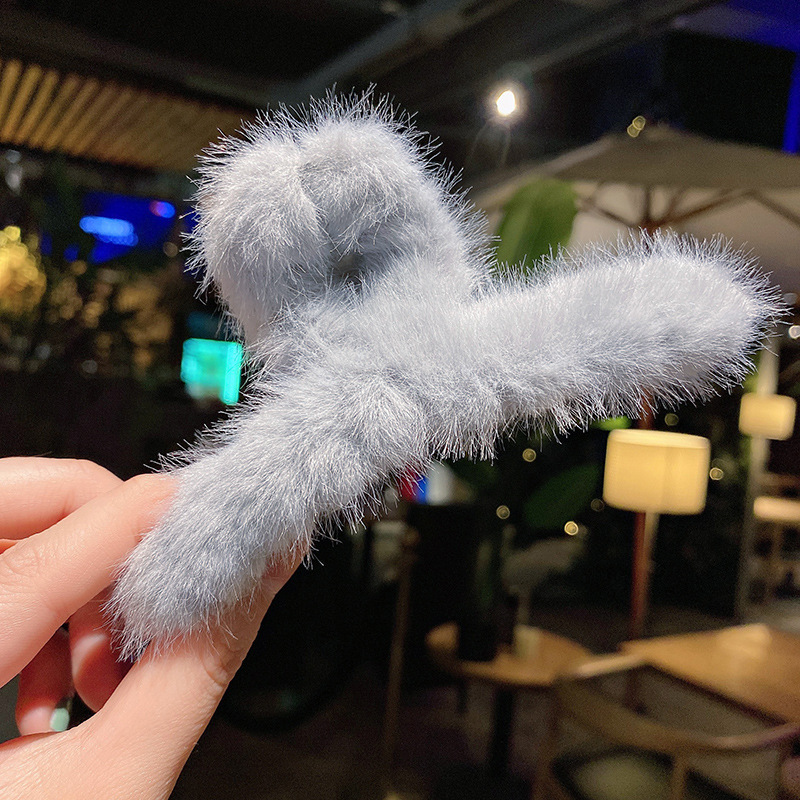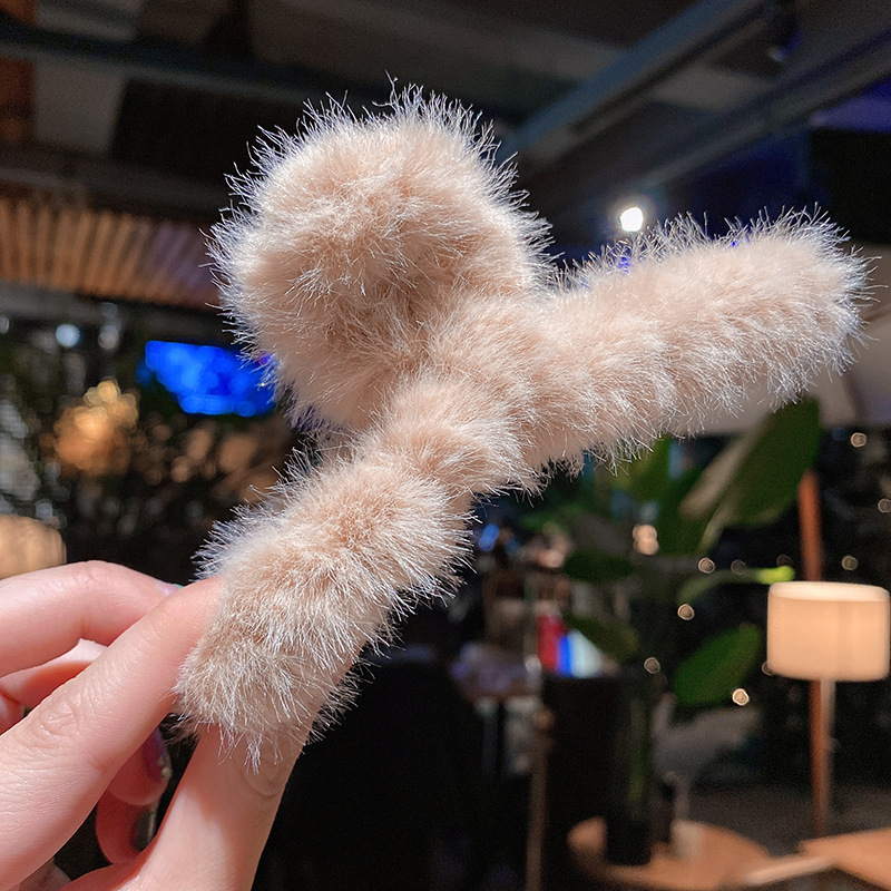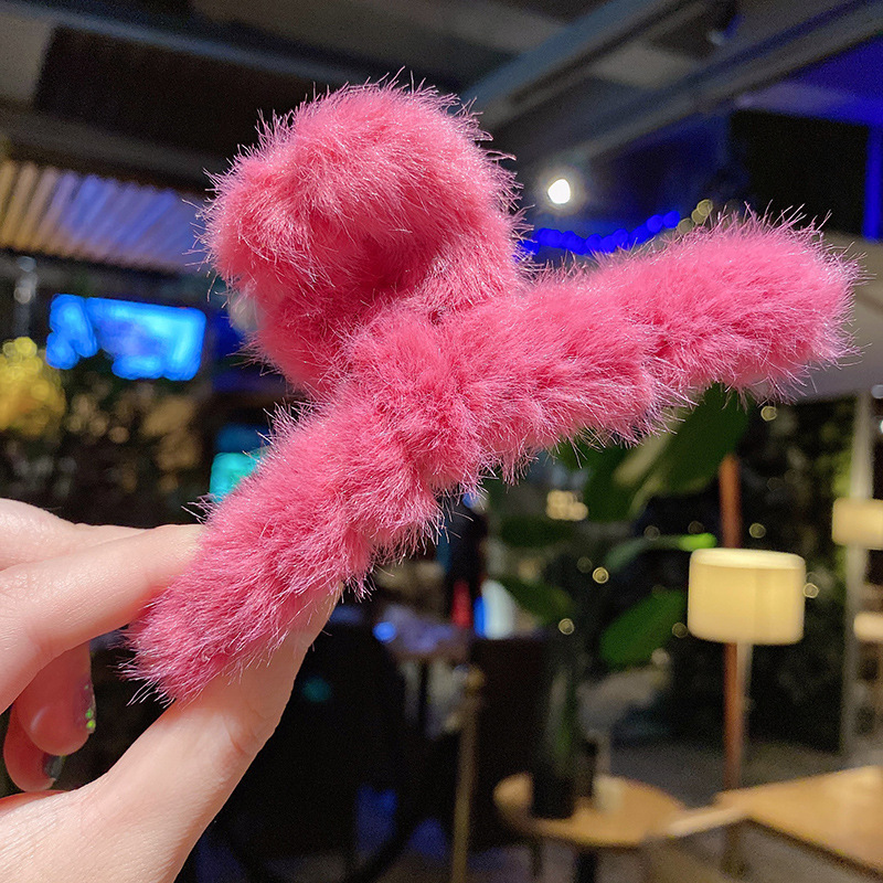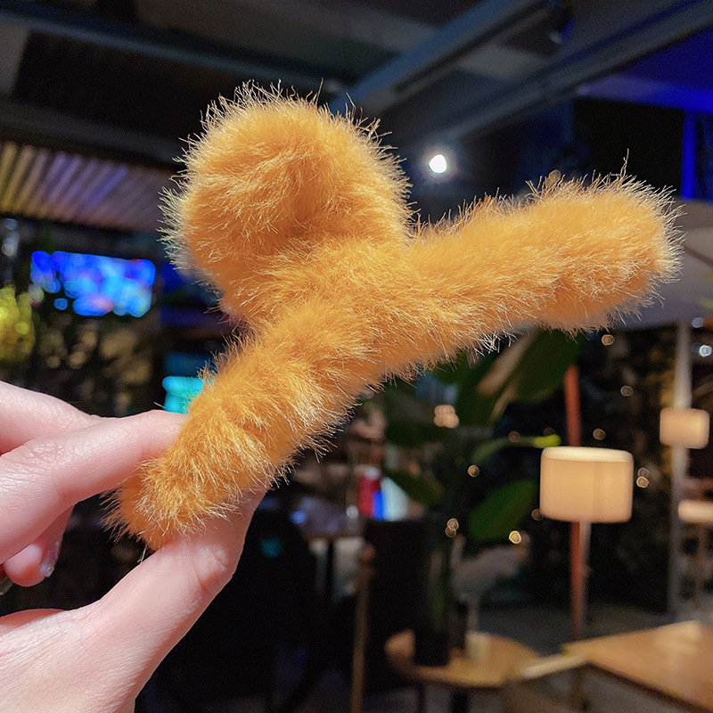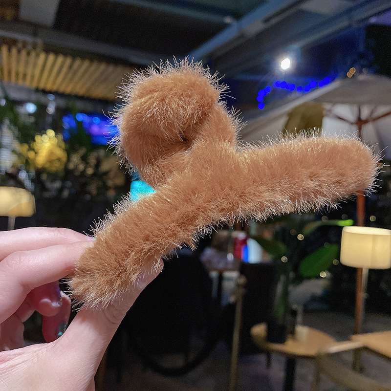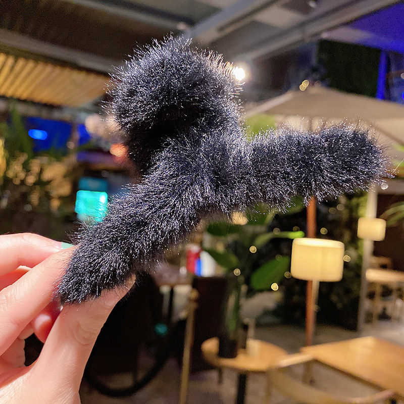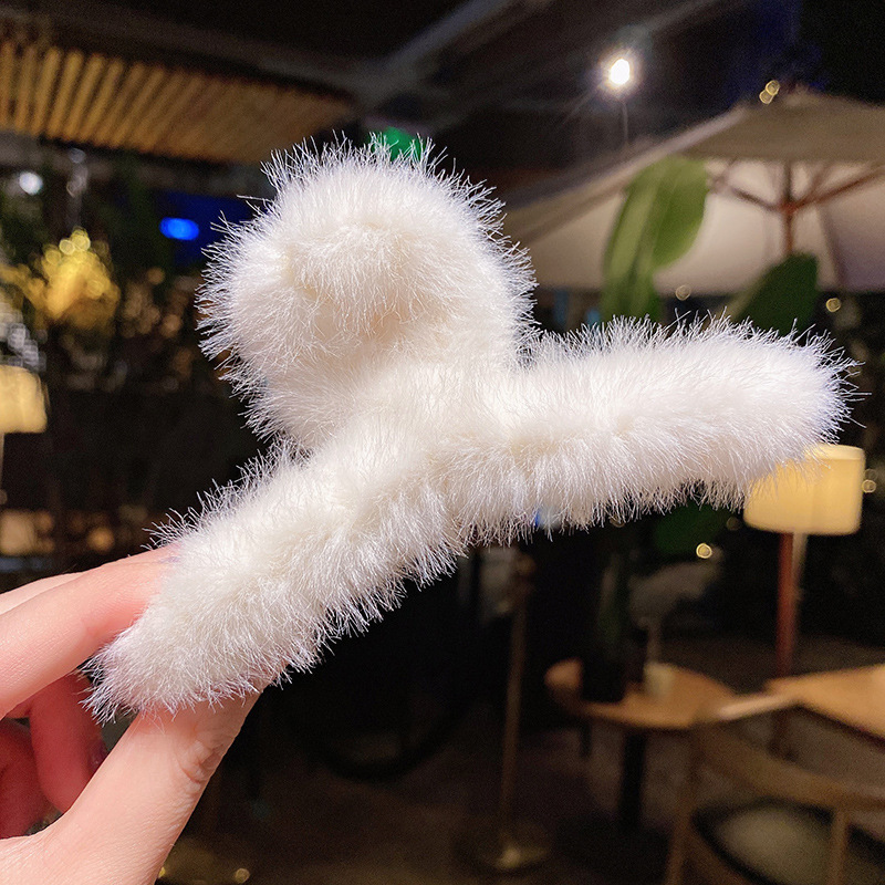 毛绒抓夹韩国少女鲨鱼夹发饰头发夹子秋冬温柔后脑勺毛毛发卡饰品