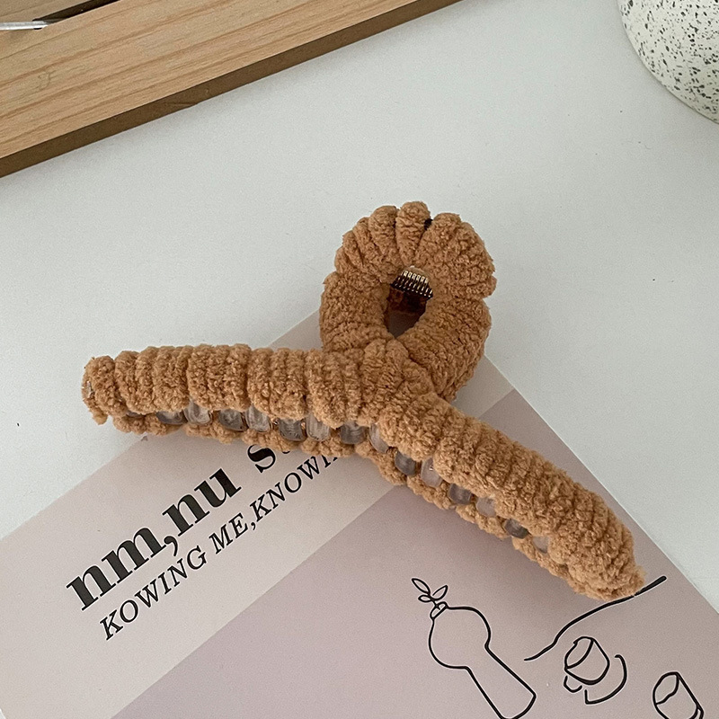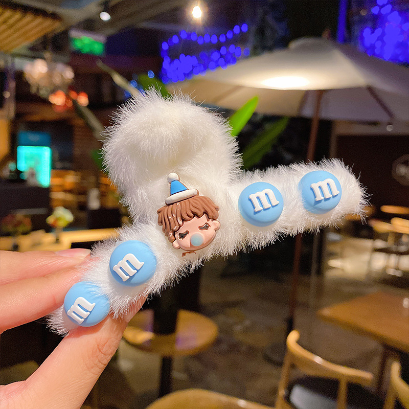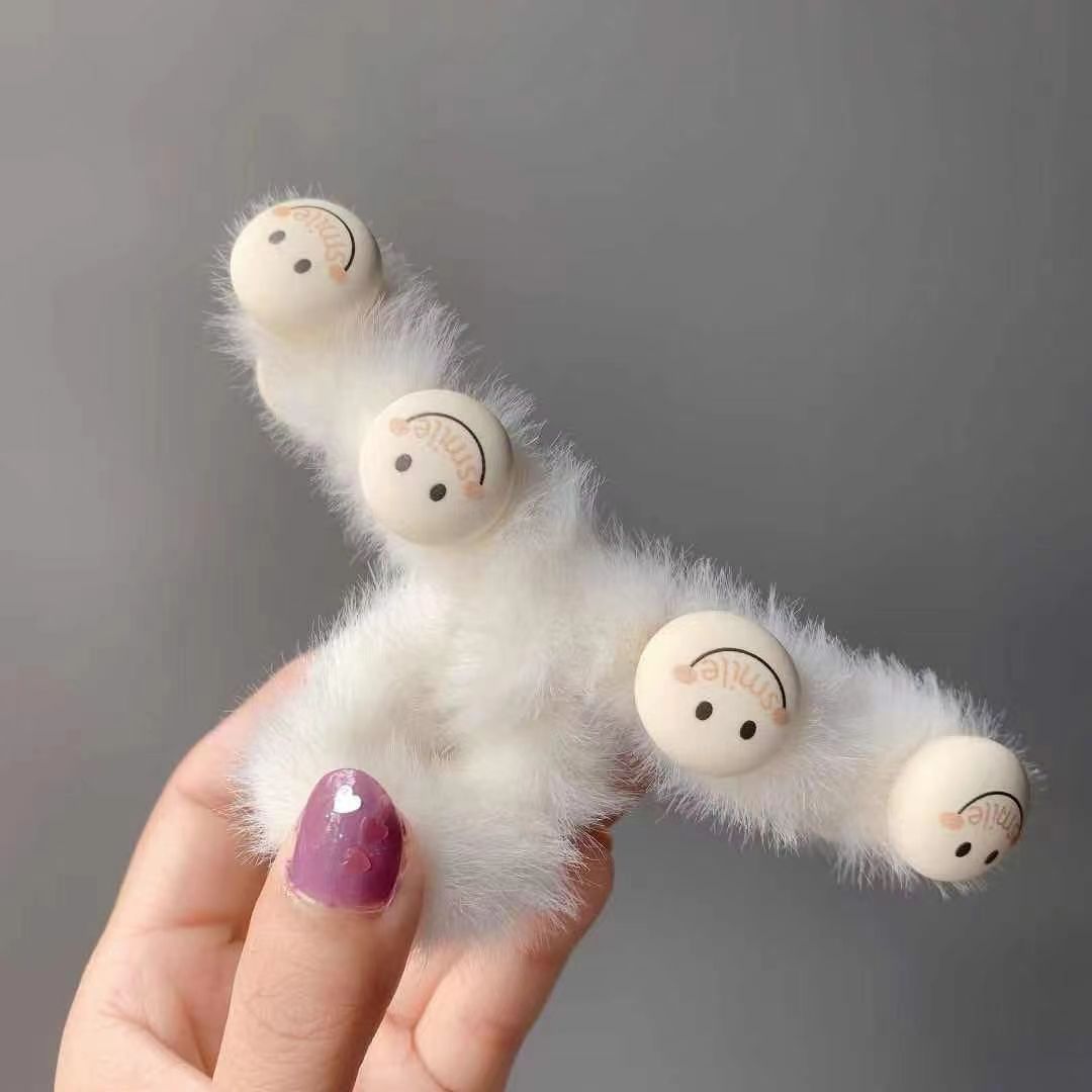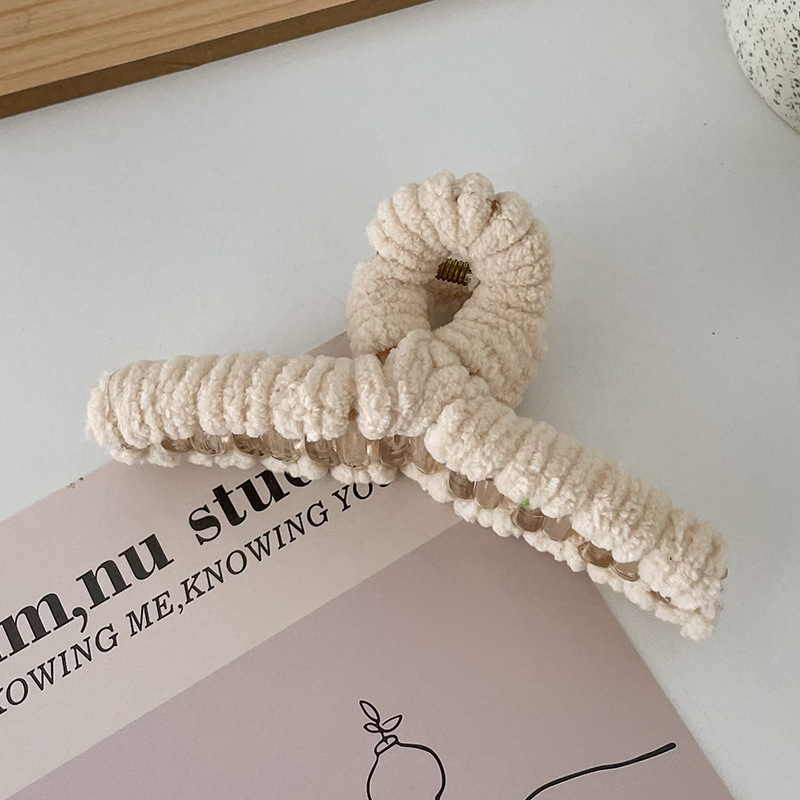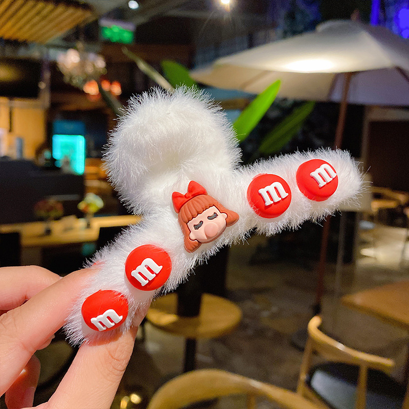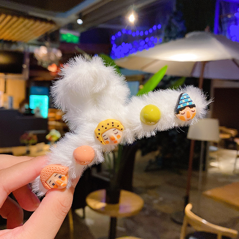 毛绒抓夹韩国少女鲨鱼夹发饰头发夹子秋冬温柔后脑勺毛毛发卡饰品
