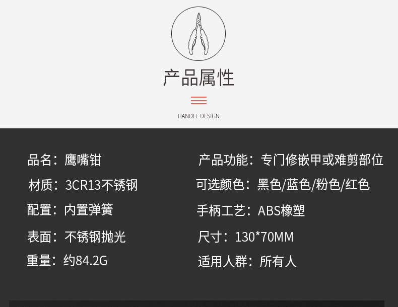 新款鹰嘴钳甲沟指甲钳修脚指甲刀嵌甲去死皮不锈钢指甲