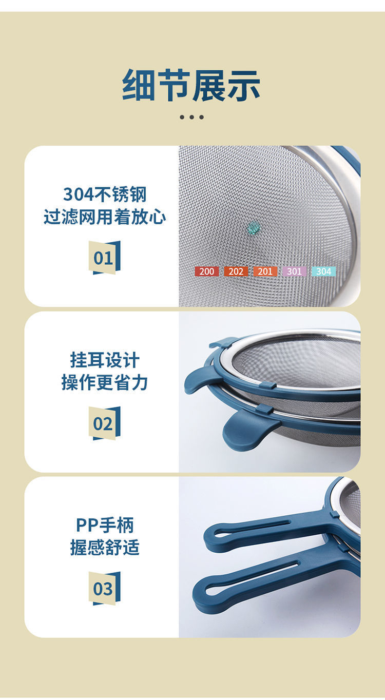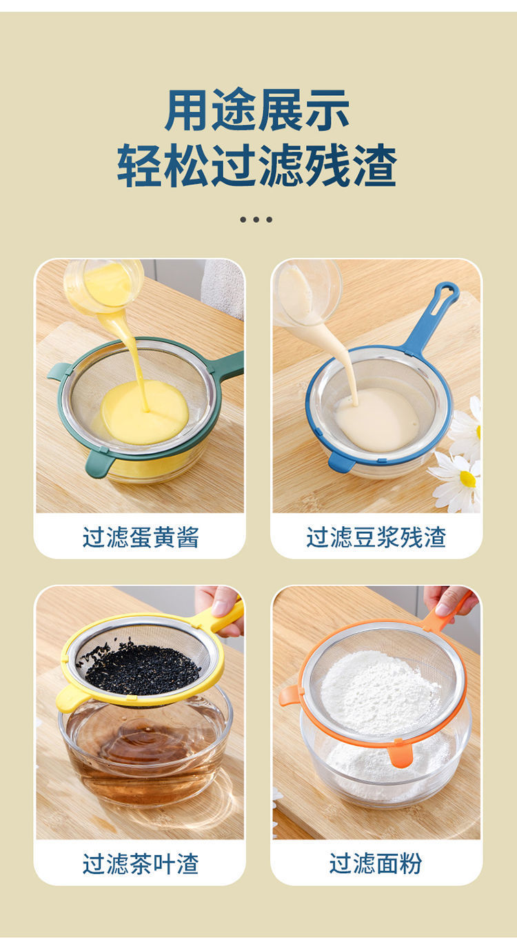 面粉筛304不锈钢带耳过滤网漏勺家用豆浆渣网筛厨房超细漏网勺子