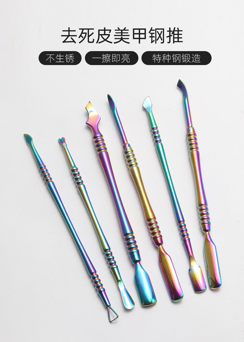 卸甲刨美甲工具卸甲钢推 nail跨境刨甲器双头炫彩