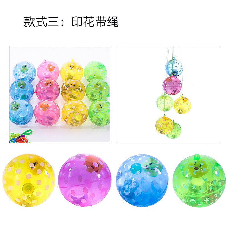 6.5cm带线发光水晶球带绳子大号弹跳跳球12个一盒秋冬季热卖玩具