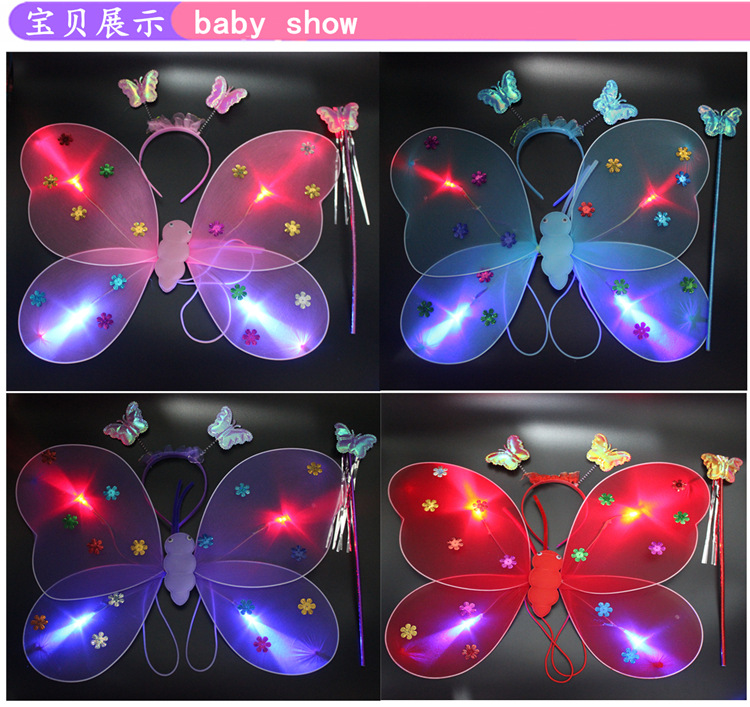 创意闪光蝴蝶背饰小孩女生节日礼物发光夜市儿童玩具批发地摊货源