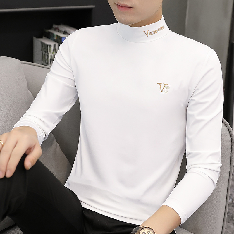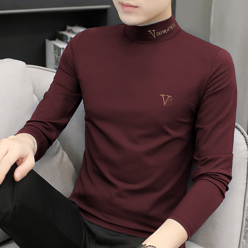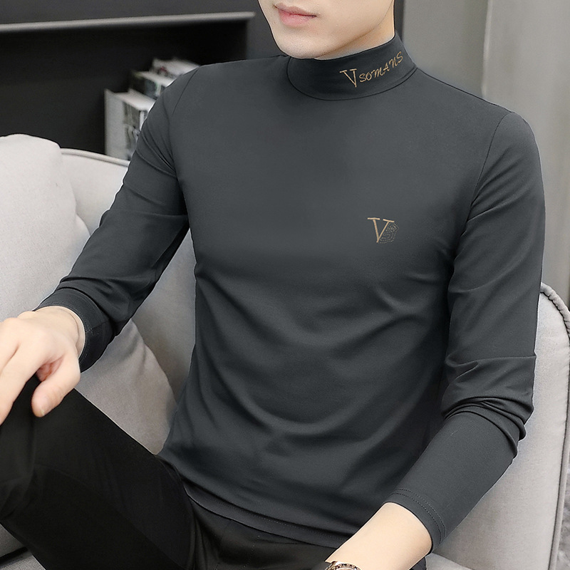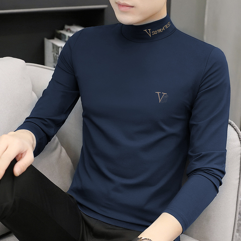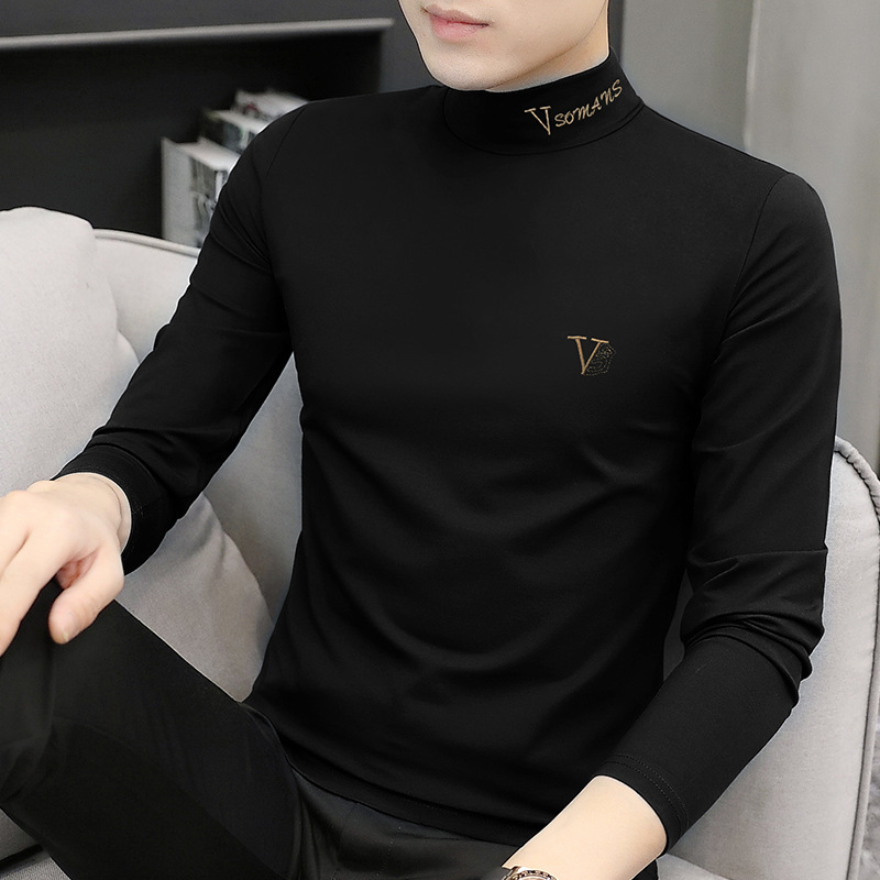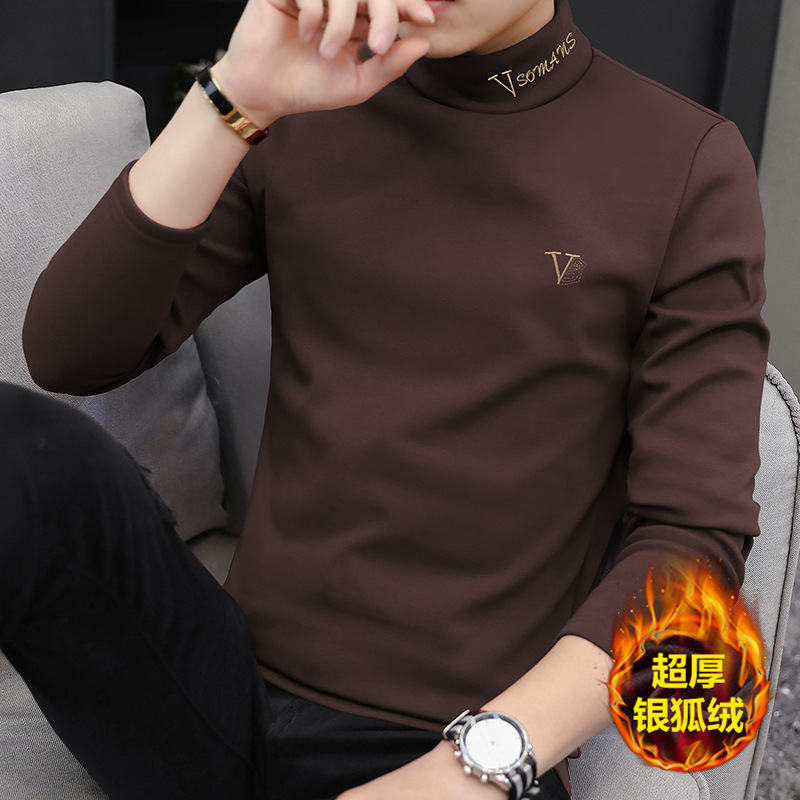 秋冬男士T恤修身保暖内搭半高领长袖秋衣服男加绒加厚打底衫中领