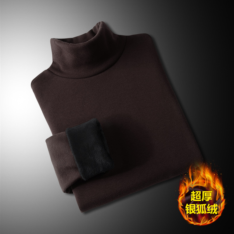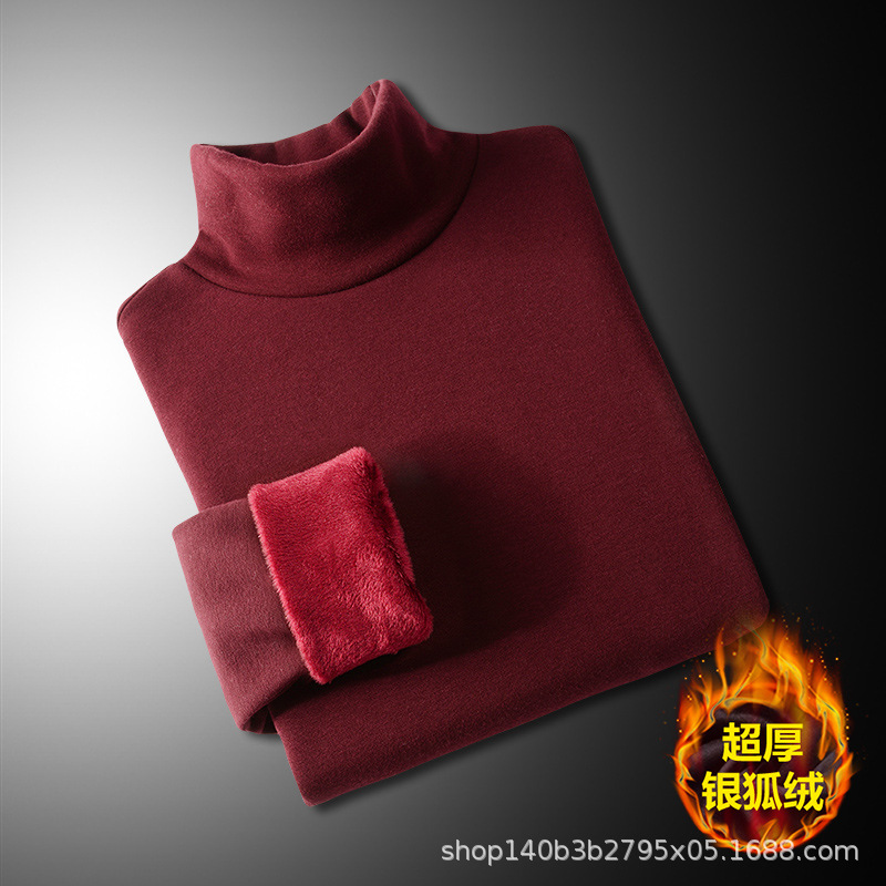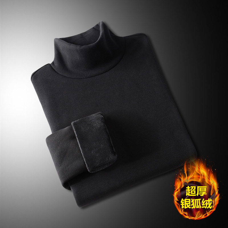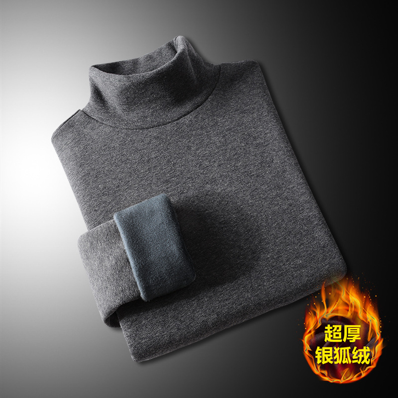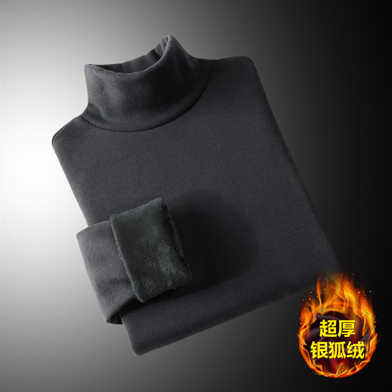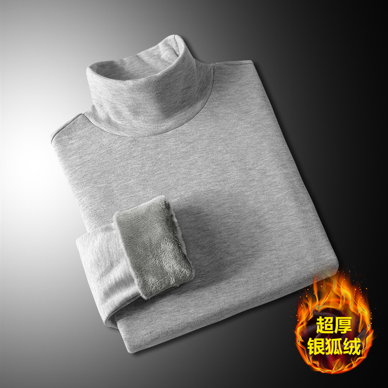 新款银狐绒上衣服男士长袖秋冬加绒保暖修身t恤男高领打底衫