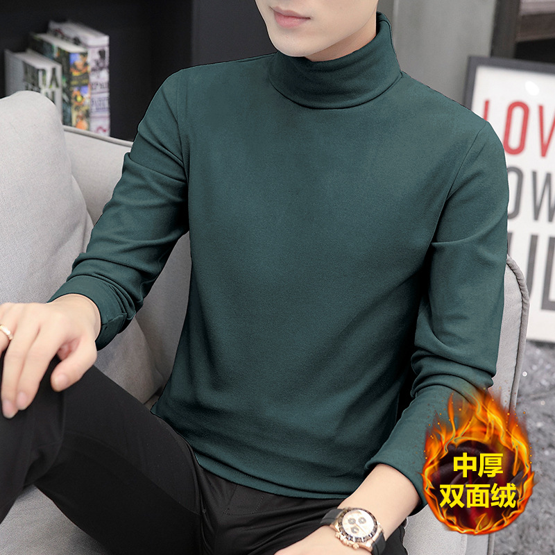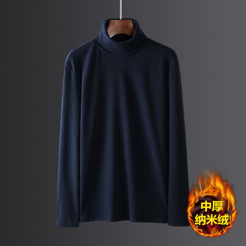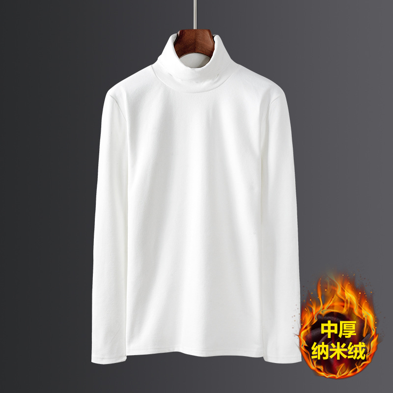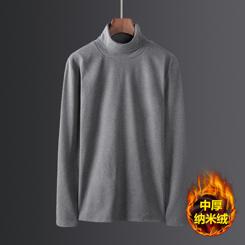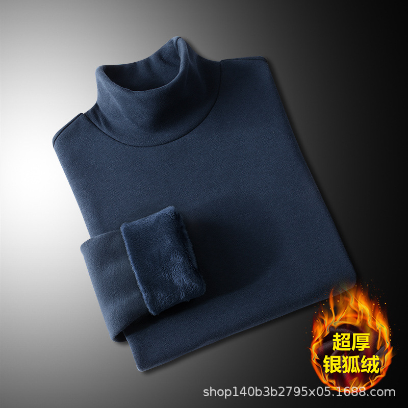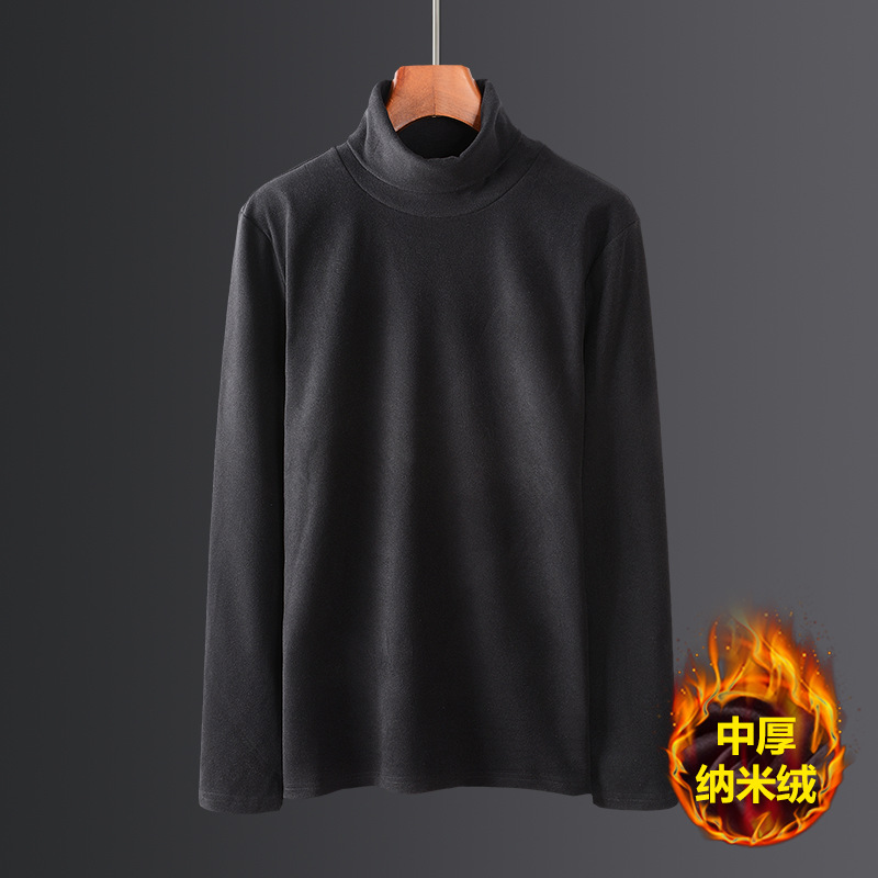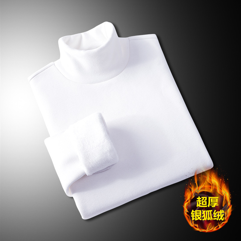 新款银狐绒上衣服男士长袖秋冬加绒保暖修身t恤男高领打底衫
