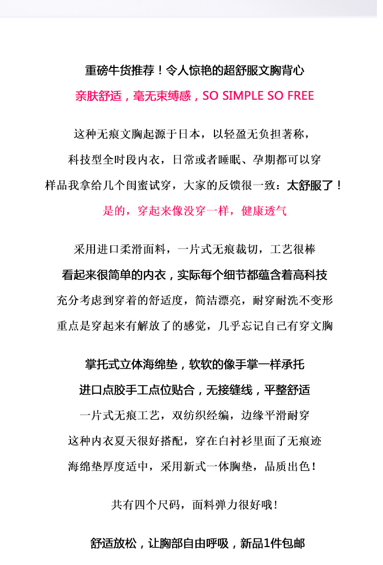 无痕内衣日本安心free 睡眠无痕文胸无钢圈尚品运动背心厂家直销