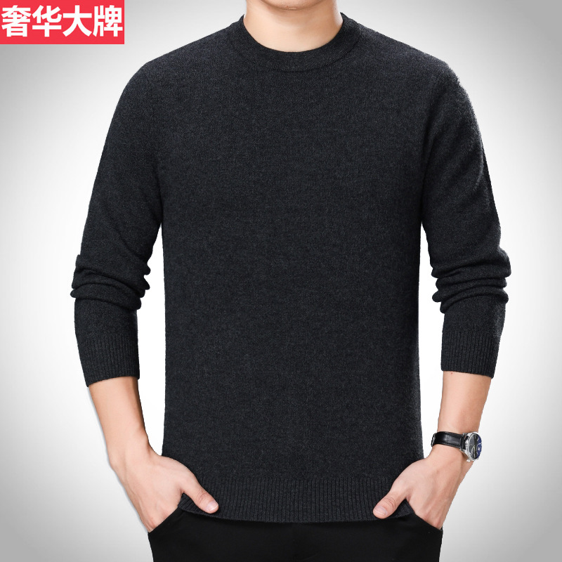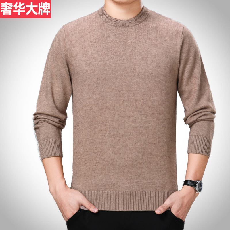 一件可下单 冬季圆领男士羊绒加厚套头毛衣 青中年打底羊毛衫大码