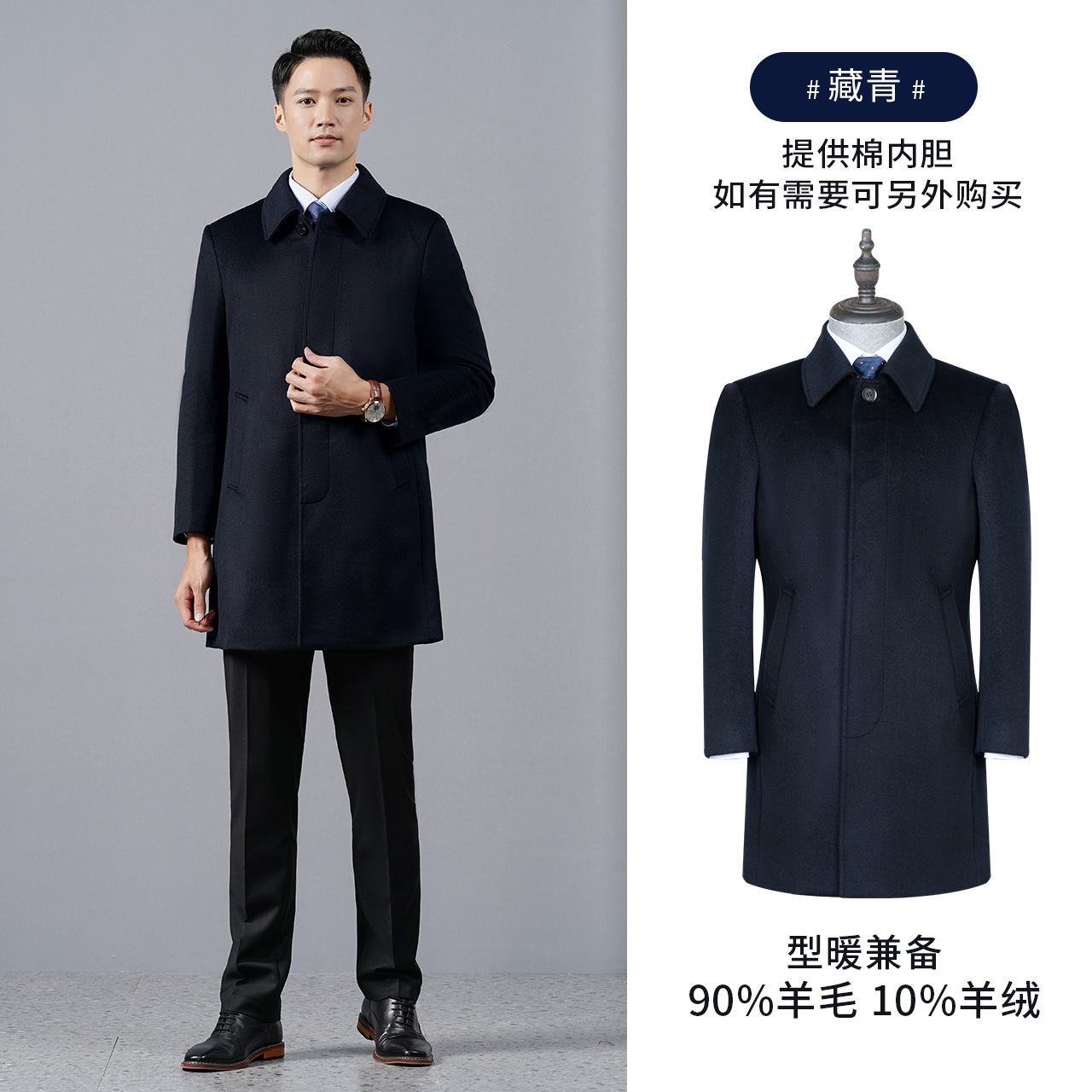 藏青色男士毛呢大衣男女同款羊绒大衣男羊毛外套休闲工作服职业装