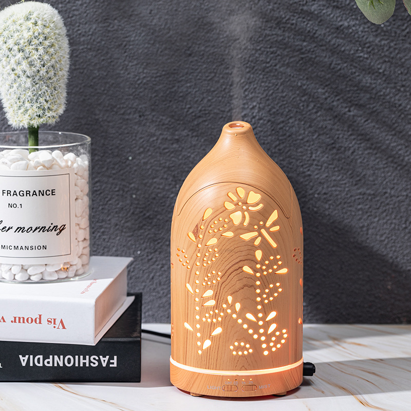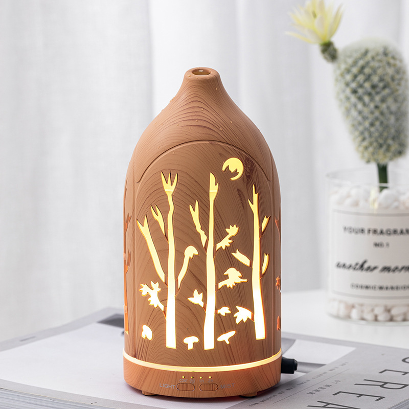 USB常规镂空星星树林木纹精油香薰机加湿器喷雾器