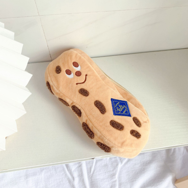 新款韩版创意笔袋可爱花生学生文具收纳袋毛绒刺绣文具袋
