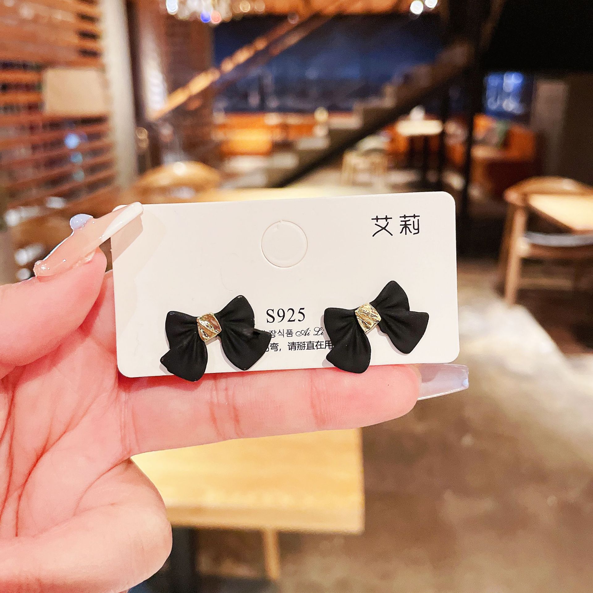 S925银针红色蝴蝶结耳环通勤简约耳钉网红韩版时尚小巧秋冬耳饰女
