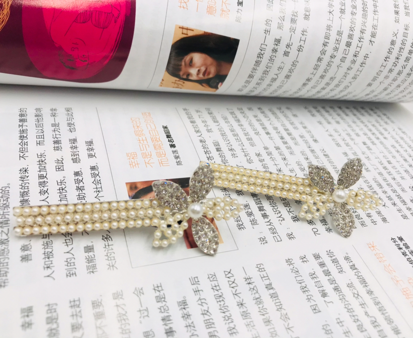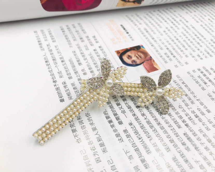 合金新款钻压夹珍珠造型夹子花瓣花夹发卡刘海侧边夹头饰发饰