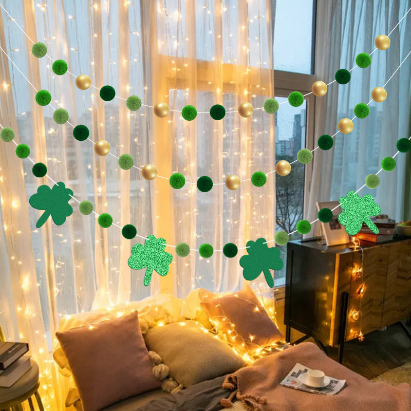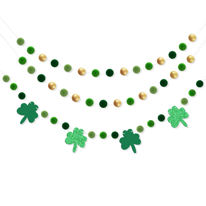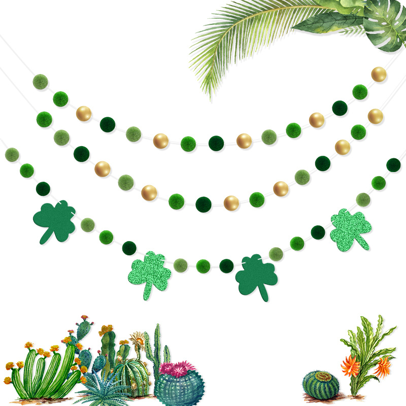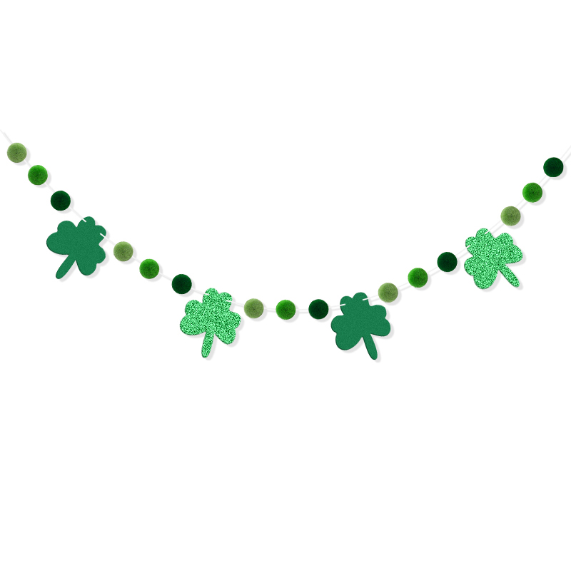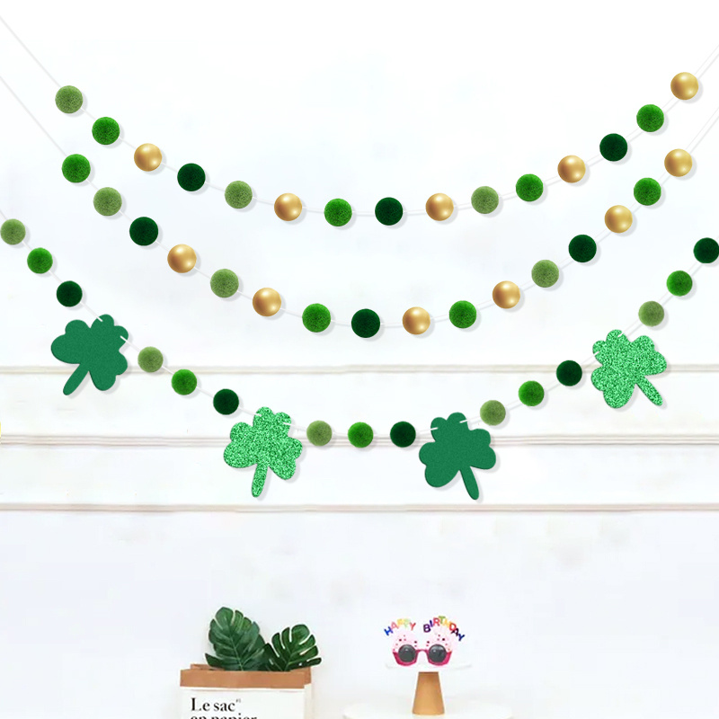 圣帕特派对狂欢节装饰串旗横幅 毛球串旗 毛球三叶草拉花