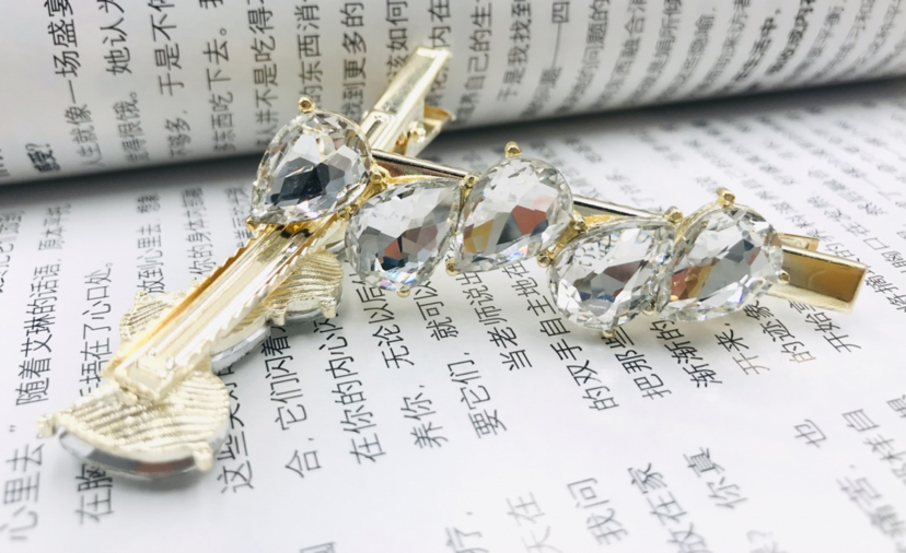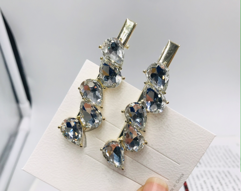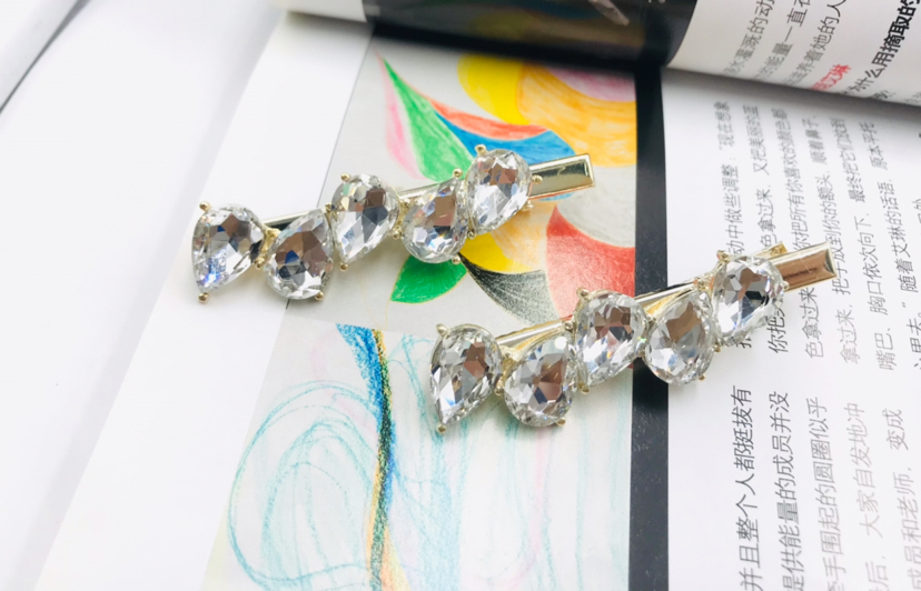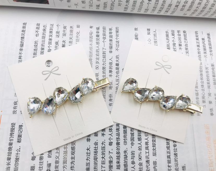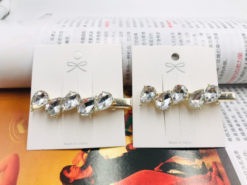 玻璃钻压夹水滴造型发卡合金刘海边夹时尚简约头饰发饰