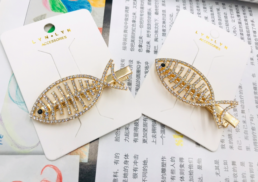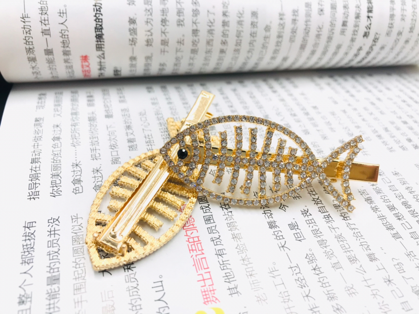 金色多钻发夹鱼造型刘海边夹时尚女发卡头饰发饰