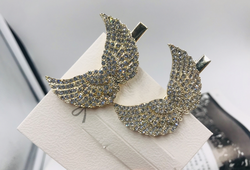 多钻压夹天使的翅膀满钻合金发卡时尚刘海侧边发夹夹子头饰发饰