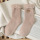 冬季加绒袜子女刺绣小熊加厚雪地袜中筒棉袜ins潮纯色翻边保暖袜