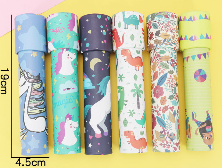 百变万花筒,多款可选,精彩世界 透过小筒转动万花筒 可以看到瞬息万变的景色 优质进口透镜 超强透光性 景观清晰,明亮,鲜艳 采用纸质彩纸 一体成型技术 做工精美 光滑无毛刺 手感细腻 大小适合宝宝抓握 皮肤接触不过敏 安全不易碎