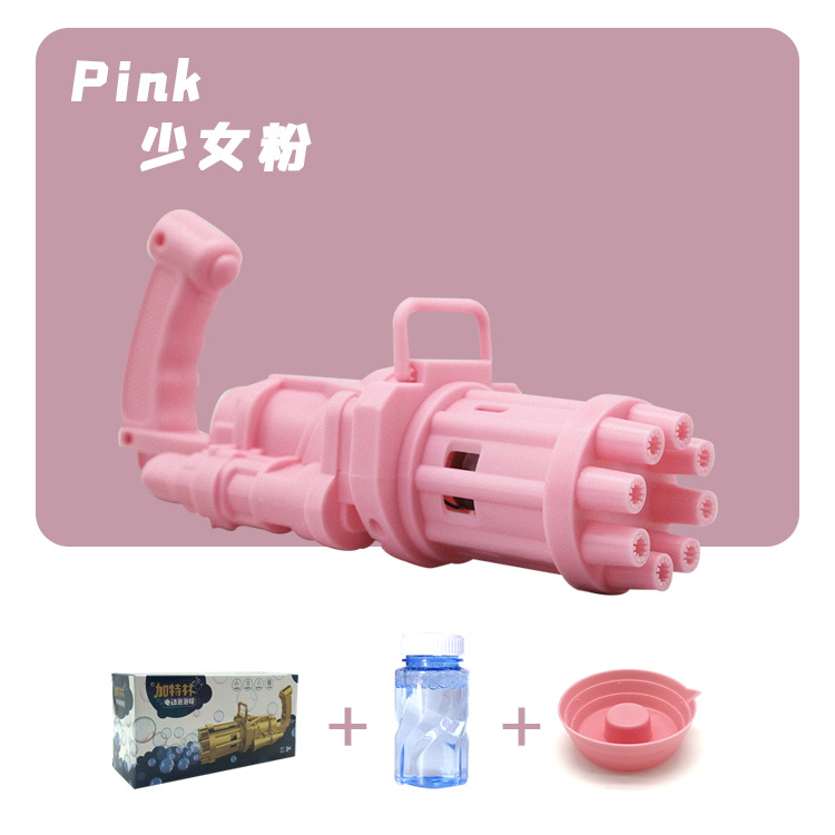 2021年新款电动加特林泡泡机,四种颜色可选,彩盒包装。
