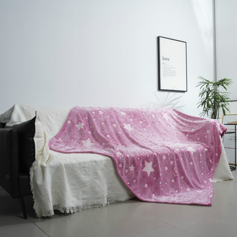 星星月亮法兰绒夜光毯夏季星月发光珊瑚绒毯儿童荧光毯午休毯
