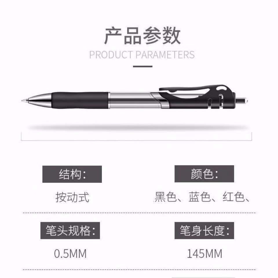 水性笔按压式碳素水笔考试办公 0.5mm黑色 蓝色 红色按动中性笔