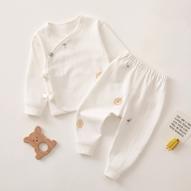 新生儿衣服秋季不连帽套装斜襟系带条纹婴儿睡衣宝宝衣服婴儿服装