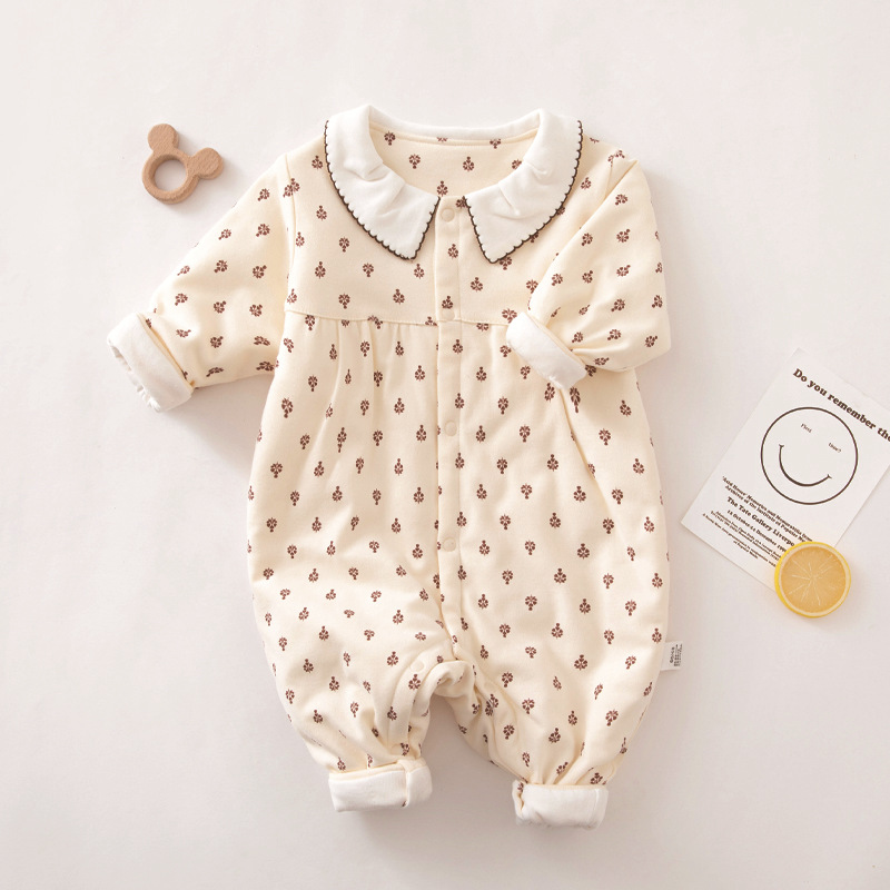 颗粒熊婴儿连体衣冬季夹棉长袖单排扣婴儿服装婴儿秋装新生儿衣服