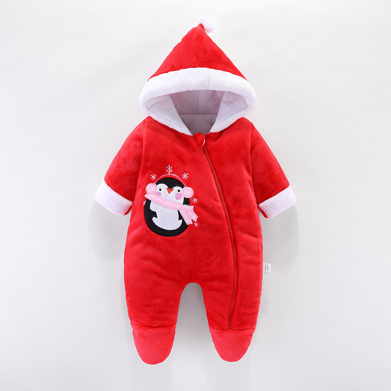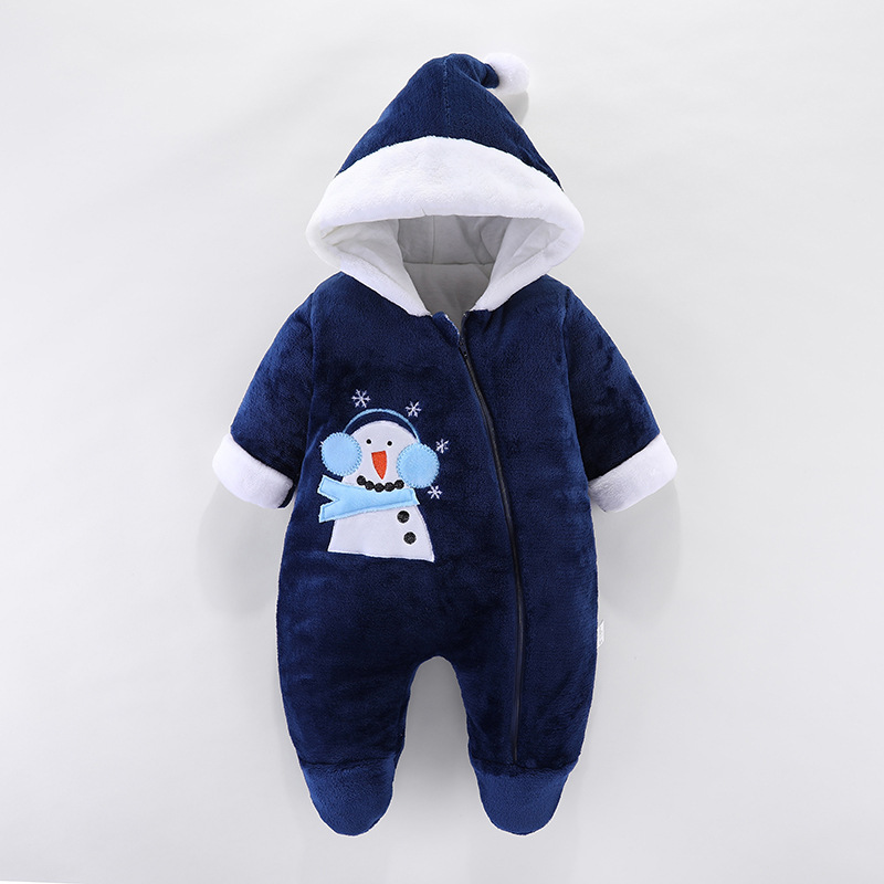 新款男女宝宝哈衣卡通爬服婴儿连体衣秋冬季新生儿加厚外出服保暖