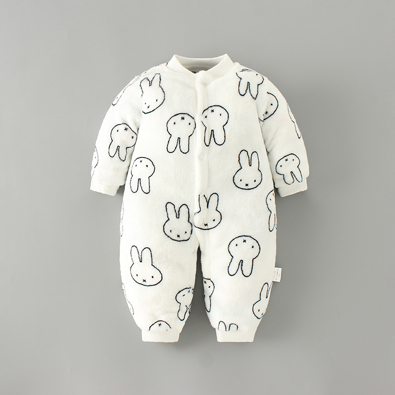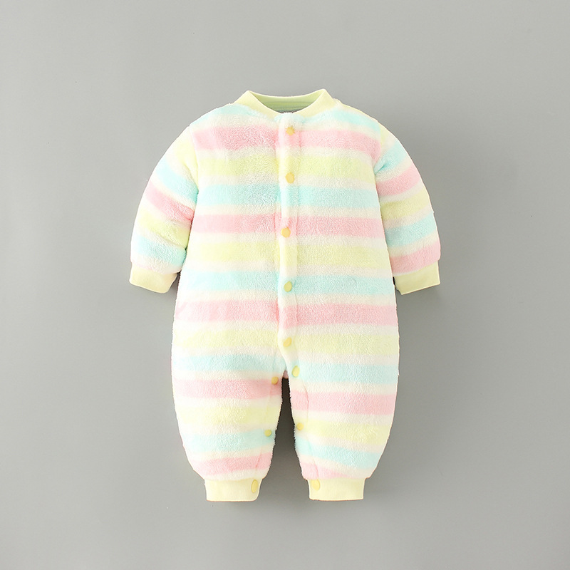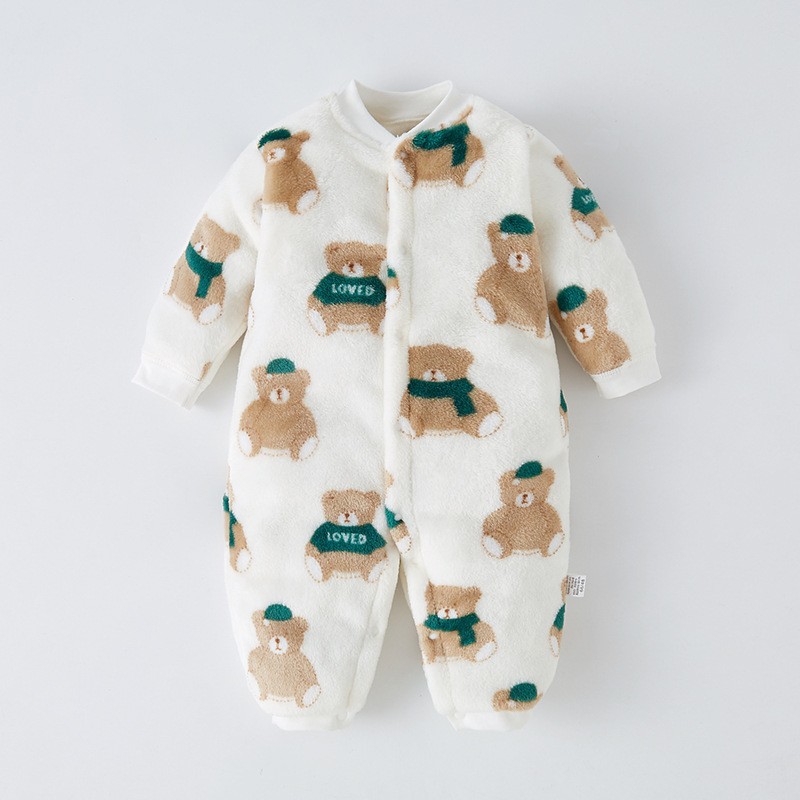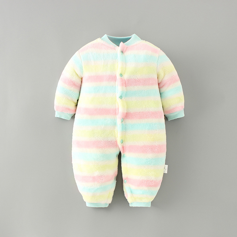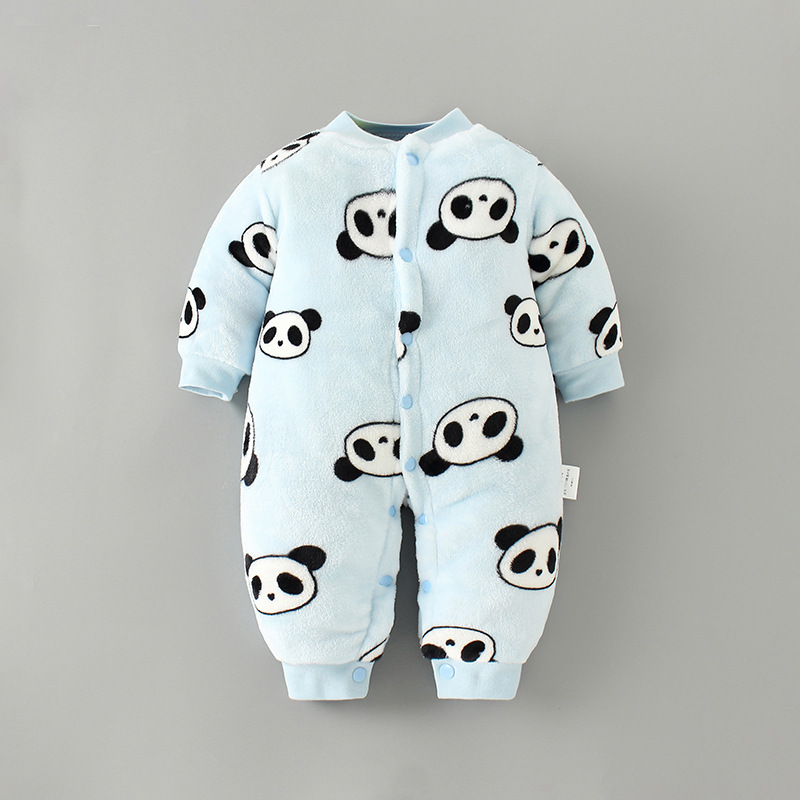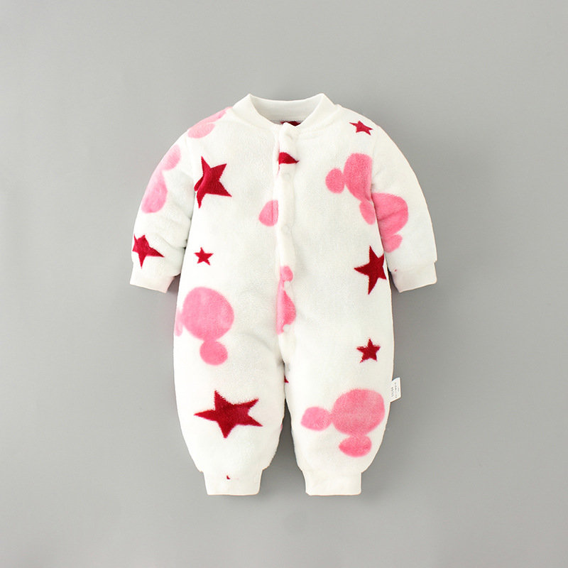 宝宝法兰绒连体衣睡衣春秋保暖爬服新生婴儿连体衣外套哈衣爬服