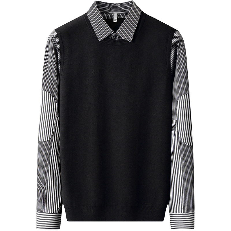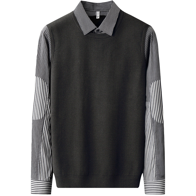 秋冬季加厚保暖假两件毛衣男修身商务休闲衬衫领针织衫男
