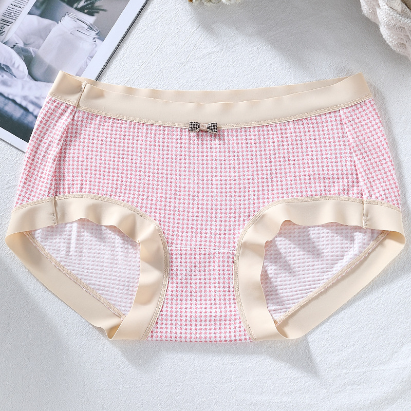 大码莫代尔内裤女 200斤桑蚕丝裆千鸟格印花中腰少女无