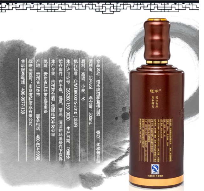 2014年份道和至樽酒道禾酱香53°酒500ML—— 技术参数生产商:贵州茅台酒厂集团技术开发公司香型:柔和酱香型酒精度:53%vol净含量:500ml原料:高粱、小麦、水,扫码:¥898,现出658元/件,500ML/件,老中脉或是道和家人或是抵债联系18857917188,请确认,请安排,请联系。