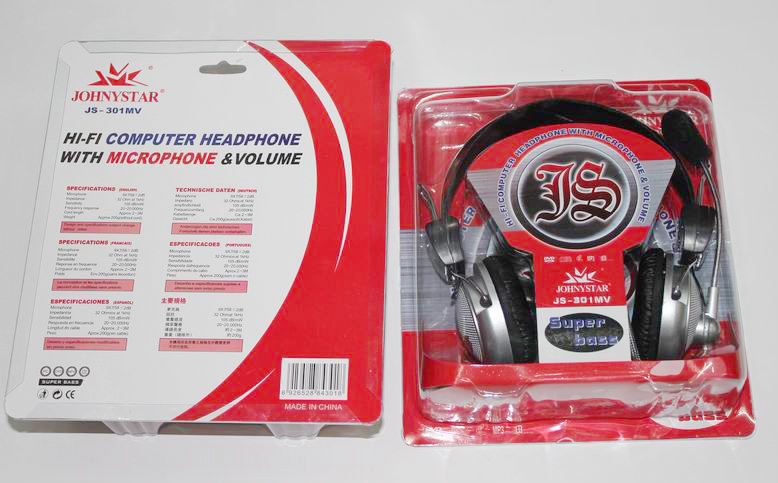 ,JS-750MV电脑耳机,全部都是铷金属喇叭,品质好,出口巴西,南非各国,现在批量出口14.8元一套配包装,吸塑纸卡包装,需要联系我们18857917188,请确认,请安排,请联系.JS-301MV 电脑耳机头戴耳机重低音耳机网吧耳机家用耳机大量供应。