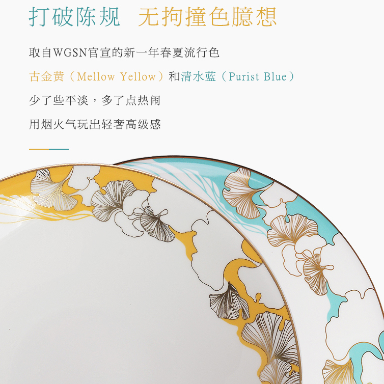华光国瓷轻奢骨瓷餐具套装碗碟套装家用简约高温无铅釉 浮光