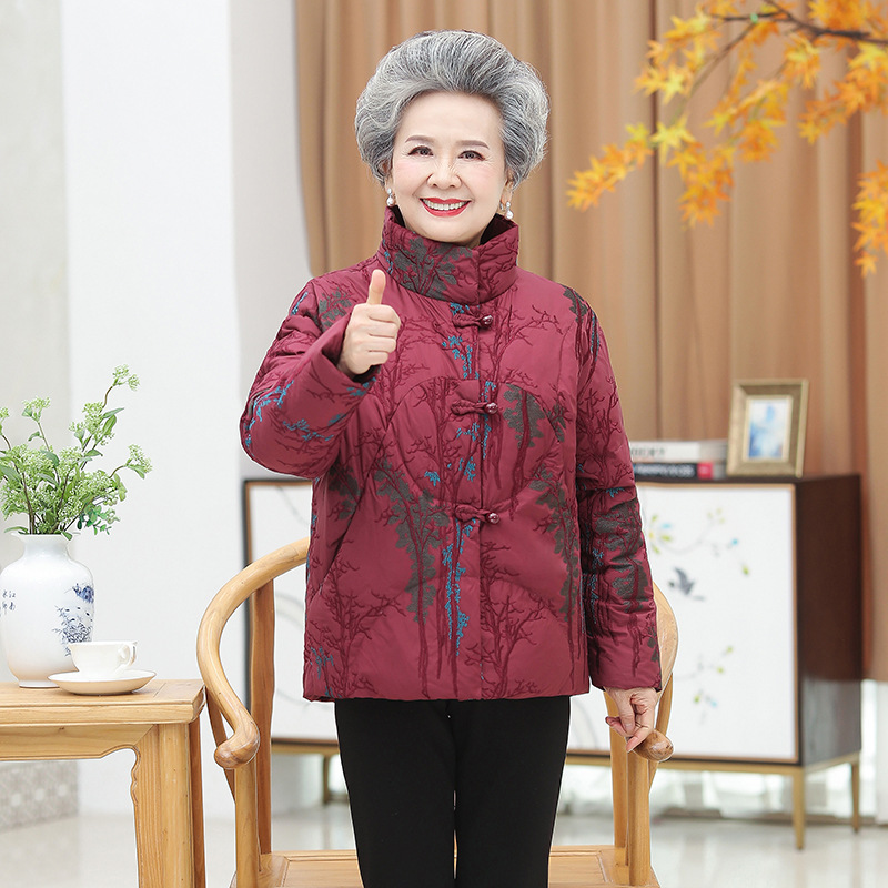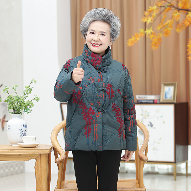 中老年女装冬季外套印花立领60岁70婆婆妈妈加厚保暖奶奶装羽绒服